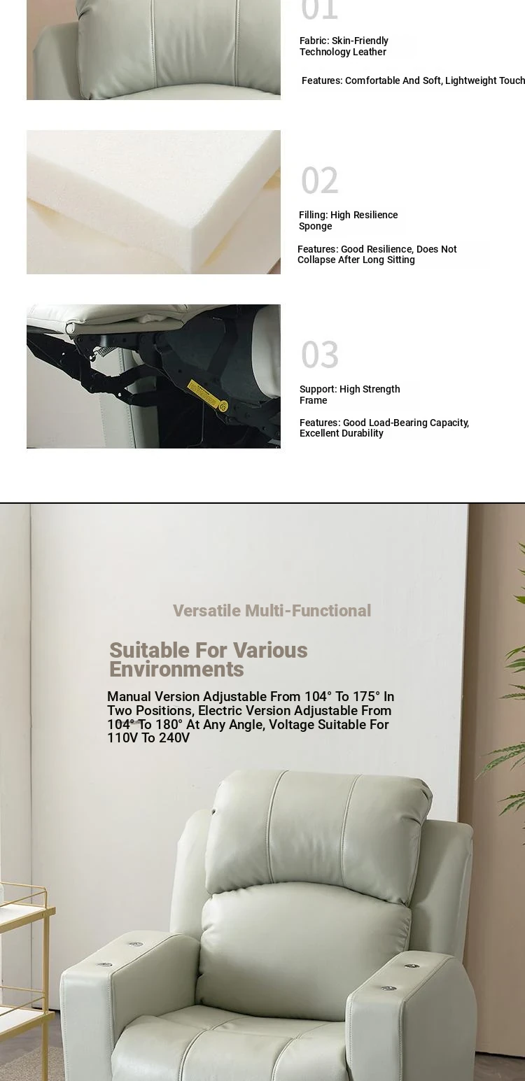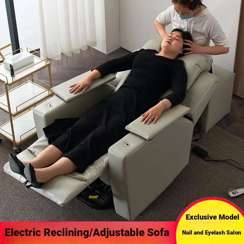 Electric Nail and Eyelash Salon Sofa Chair - Reclining 180° Beauty Chair for Microblading and Pedicure, Ergonomic Design with Comfortable Backrest
