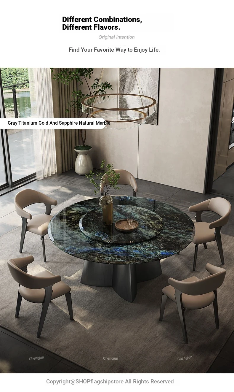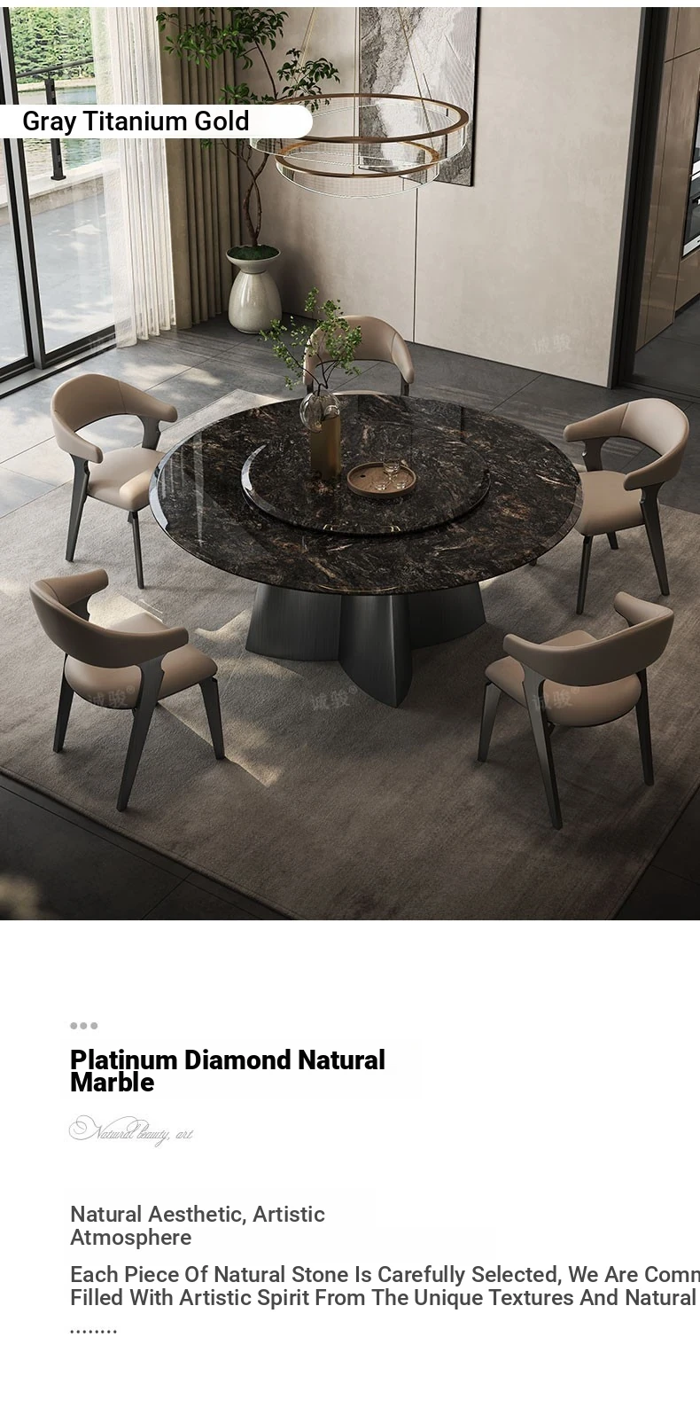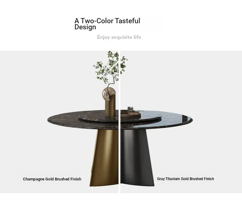 [Platinum Gold Drill/Grey Titanium Gold] 59.06 in Dining Table + Turntable