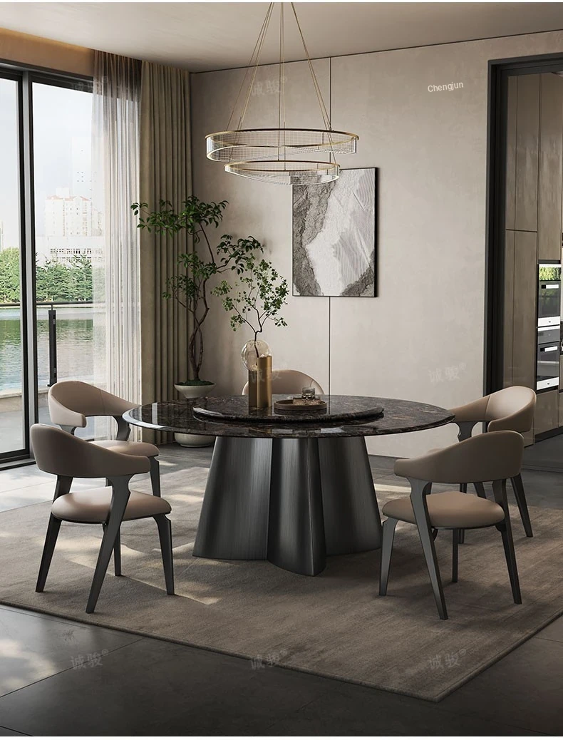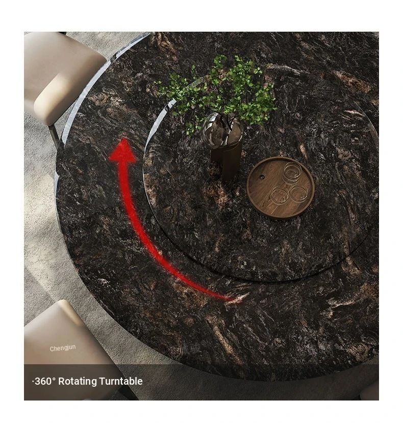 Elegant Black Marble Dining Table with Rotating Tray - Luxurious Round Design for Home and High-End Restaurants, Crafted from Natural Premium Stone