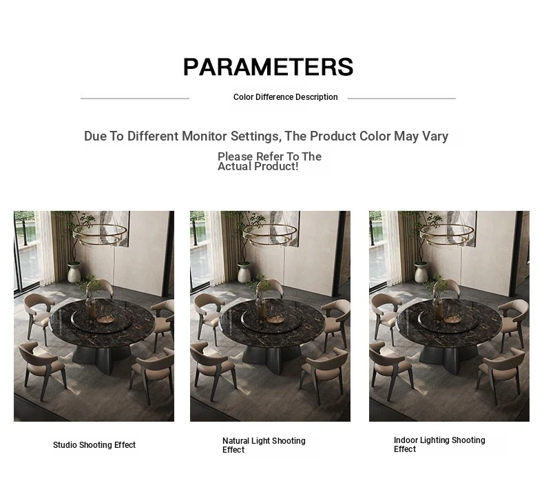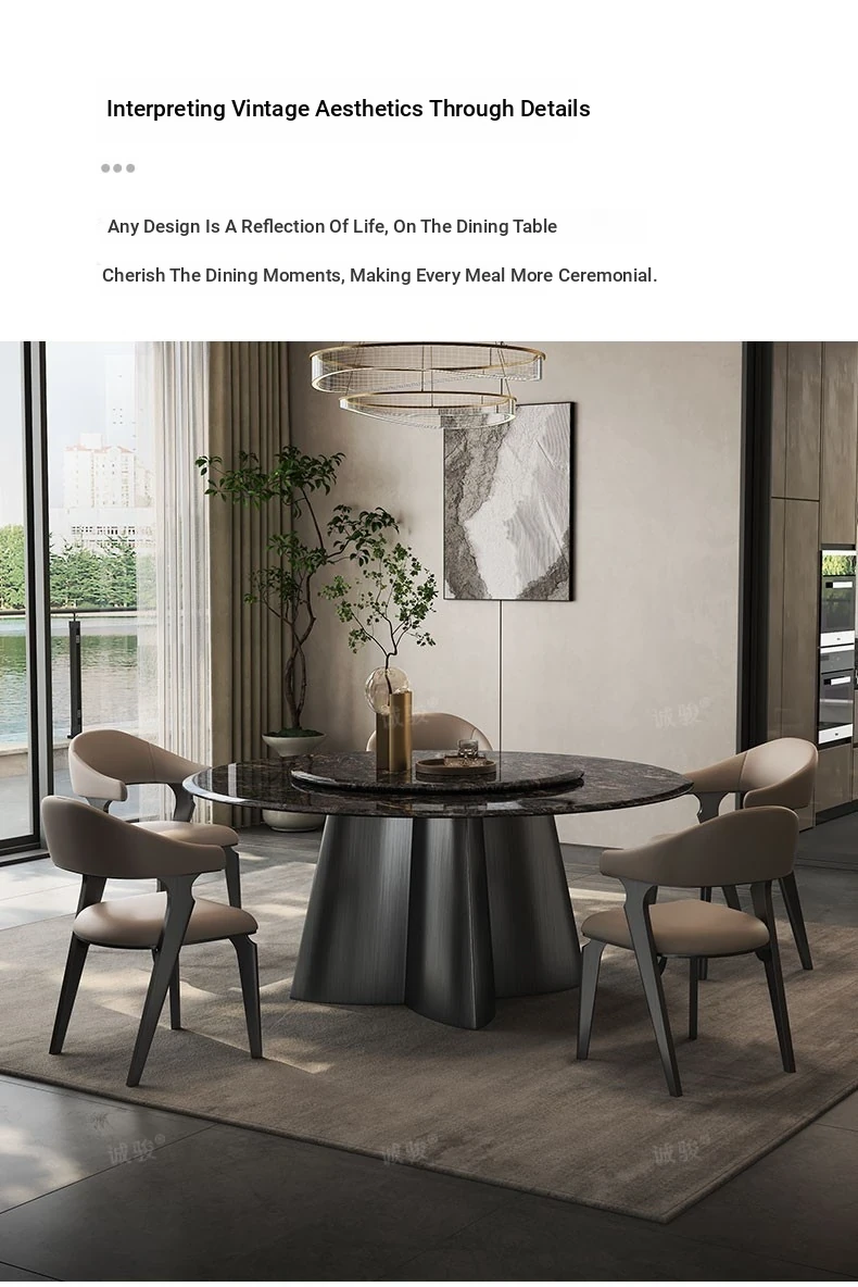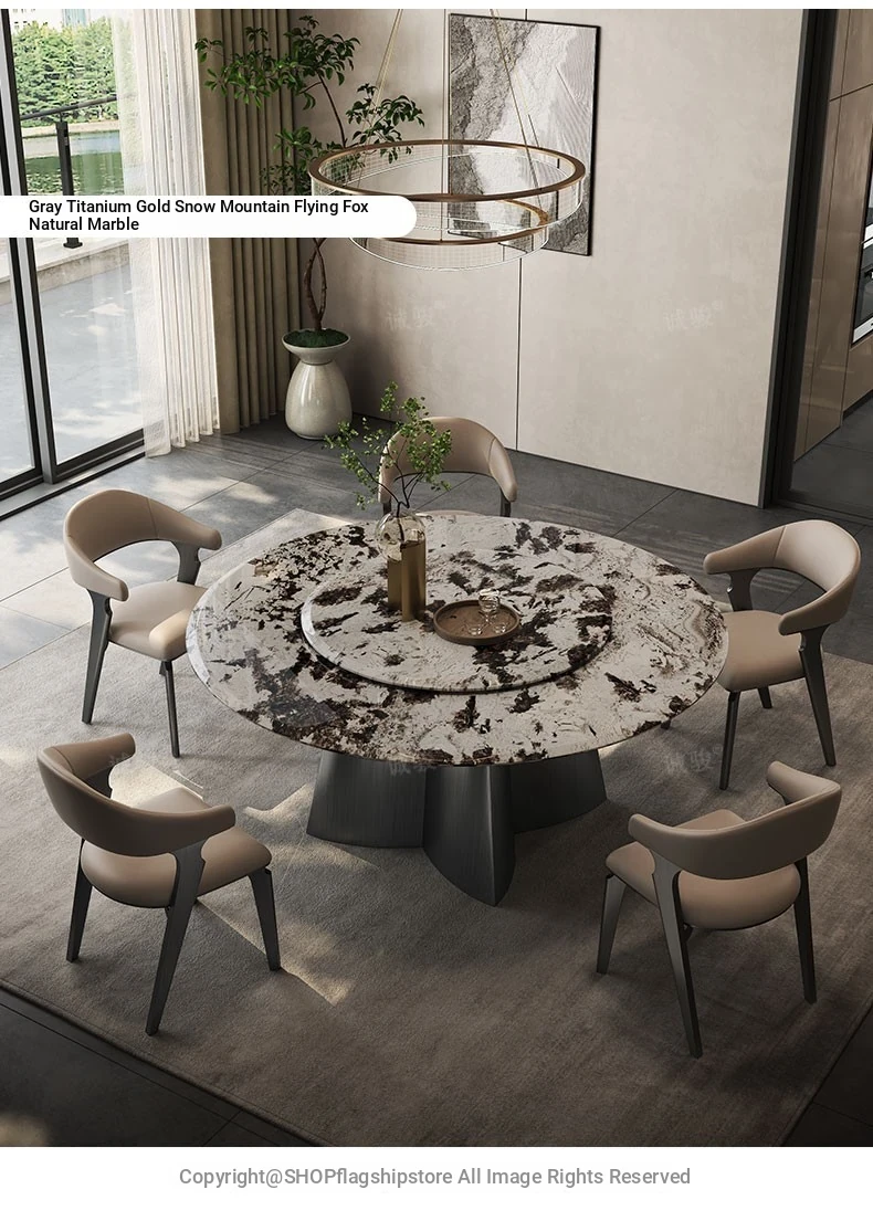[Platinum Diamond/Grey Titanium] 51.18 in Dining Table + Turntable + Dining Chair * 6