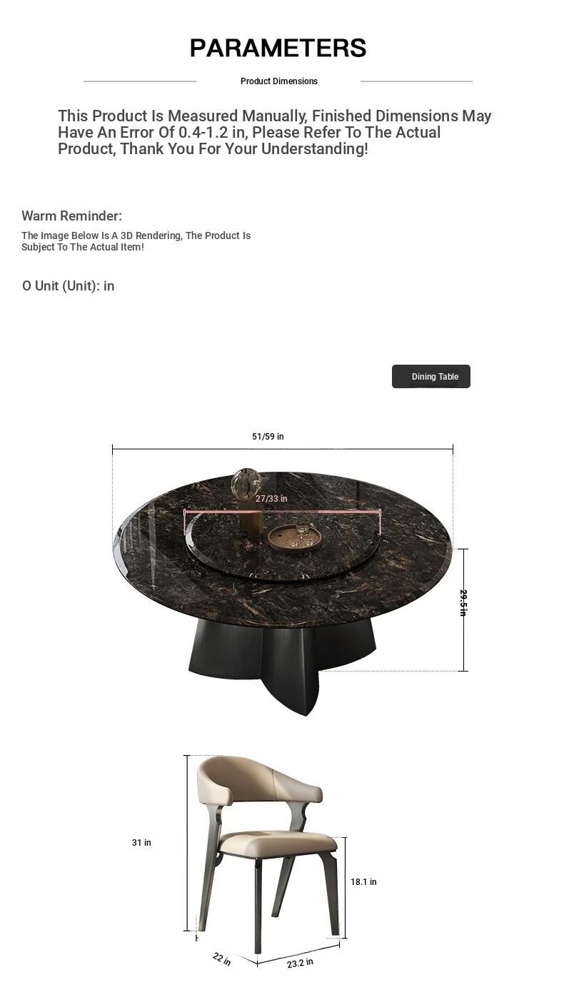 [Platinum Diamond/Grey Titanium] 59.06 in Dining Table + Turntable + Dining Chair * 6