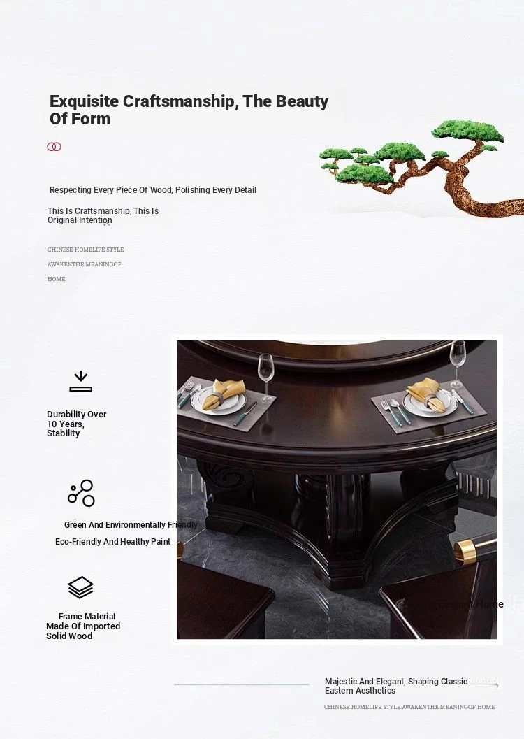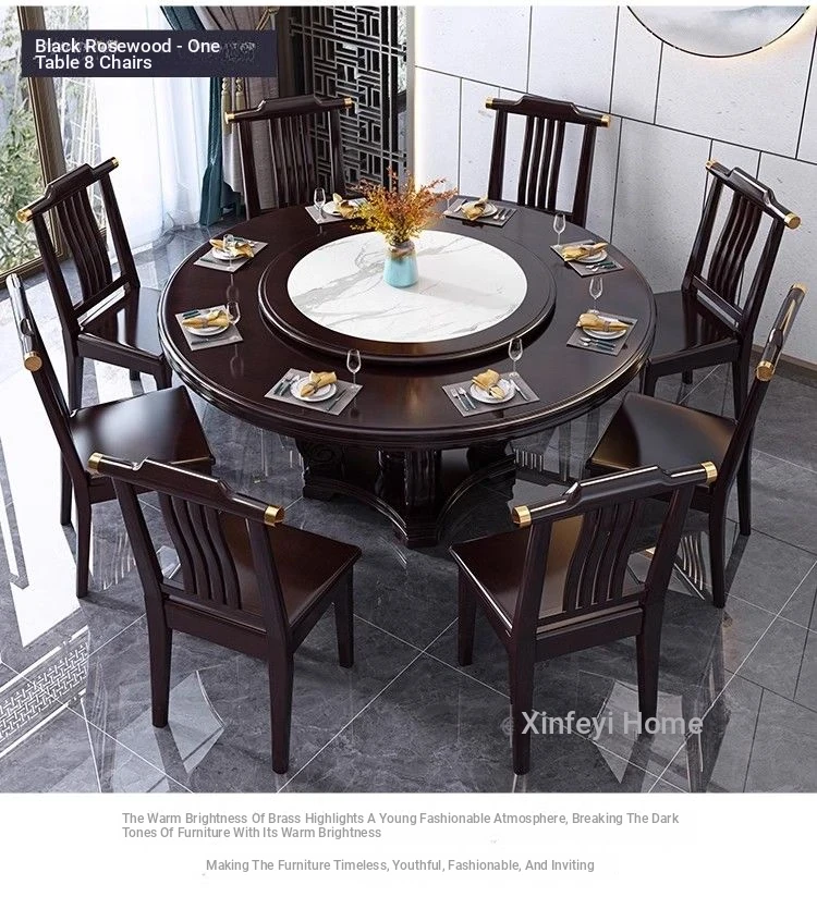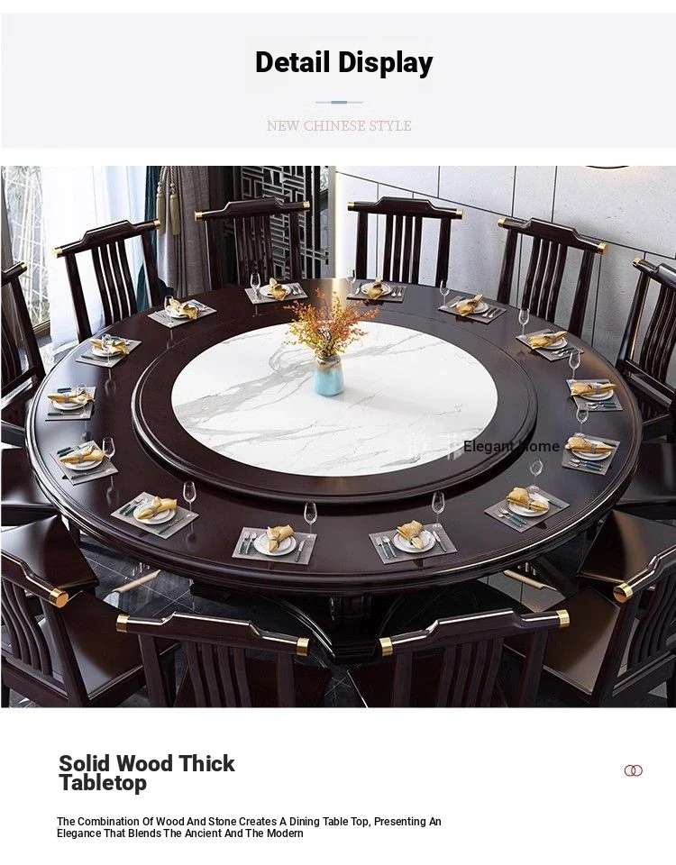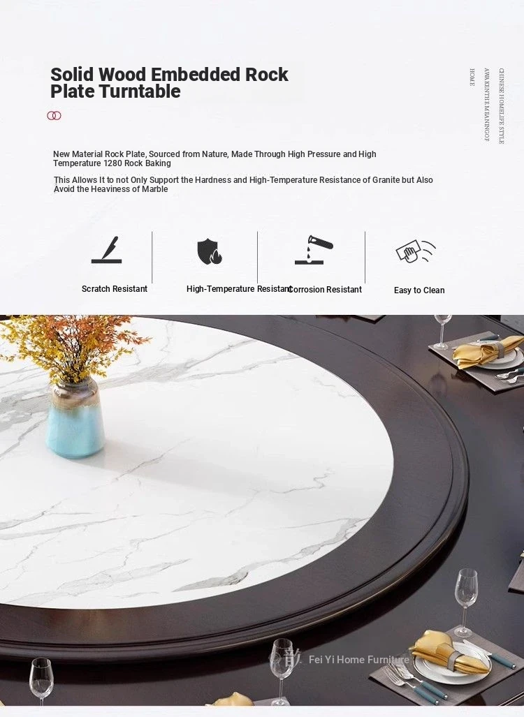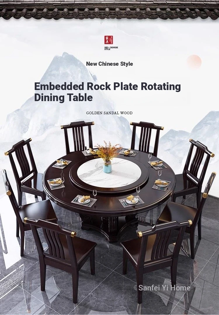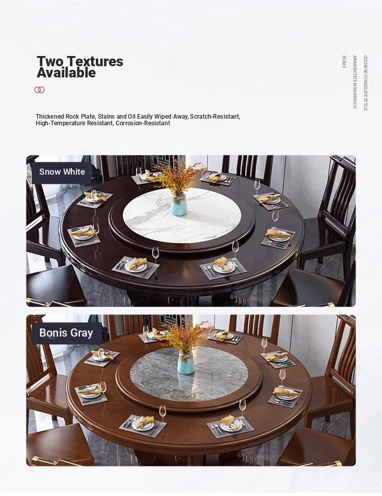 Elegant Chinese Solid Wood Dining Table Set with Round Rock Plate - Perfect for Home and Restaurants, Featuring a Stylish Rotating Design for Easy Sharing and Enjoyment.