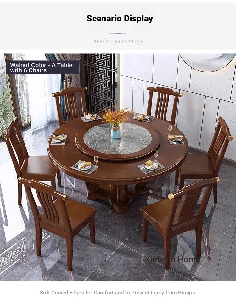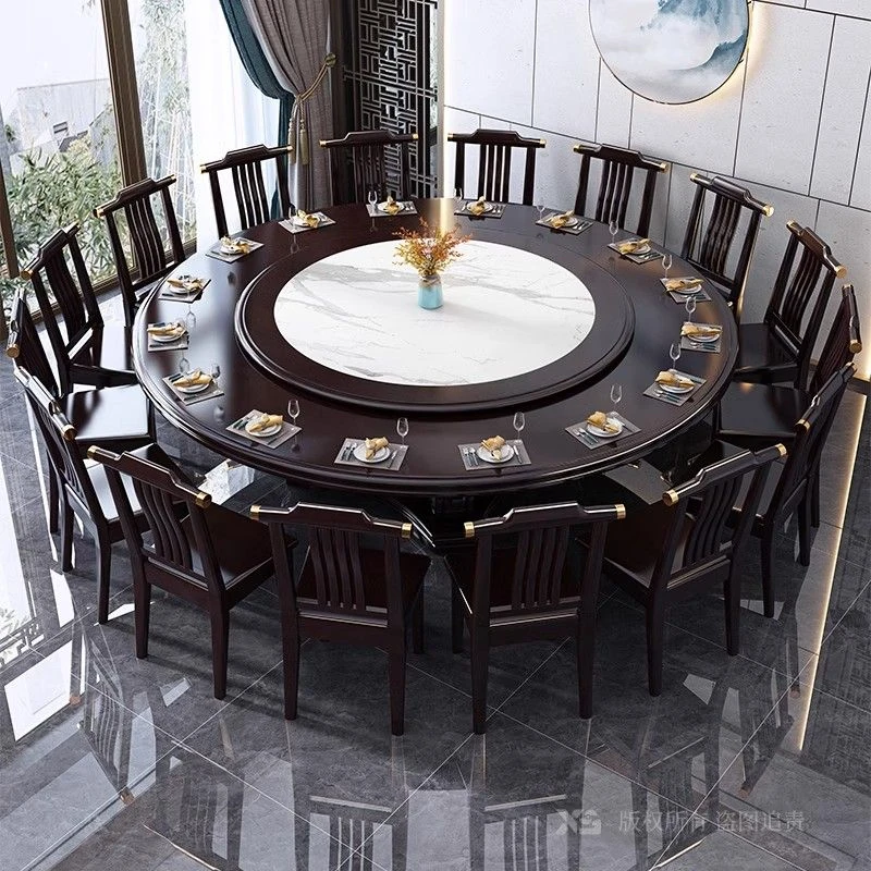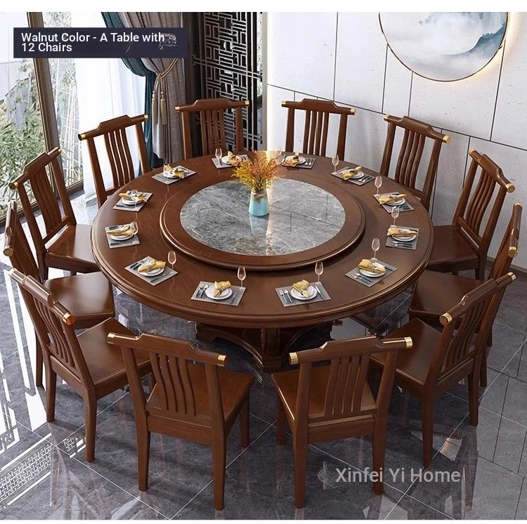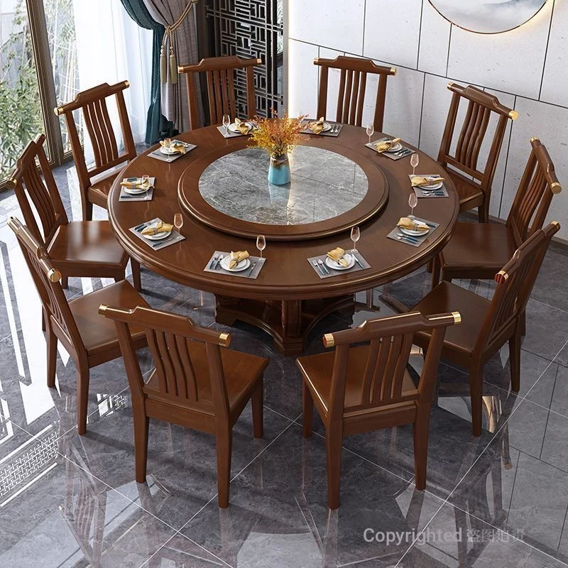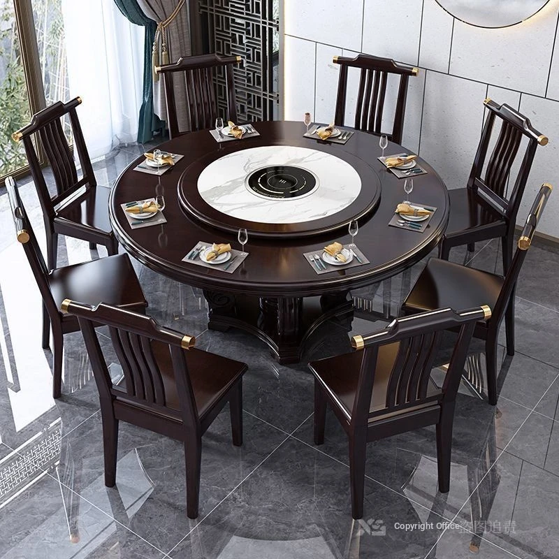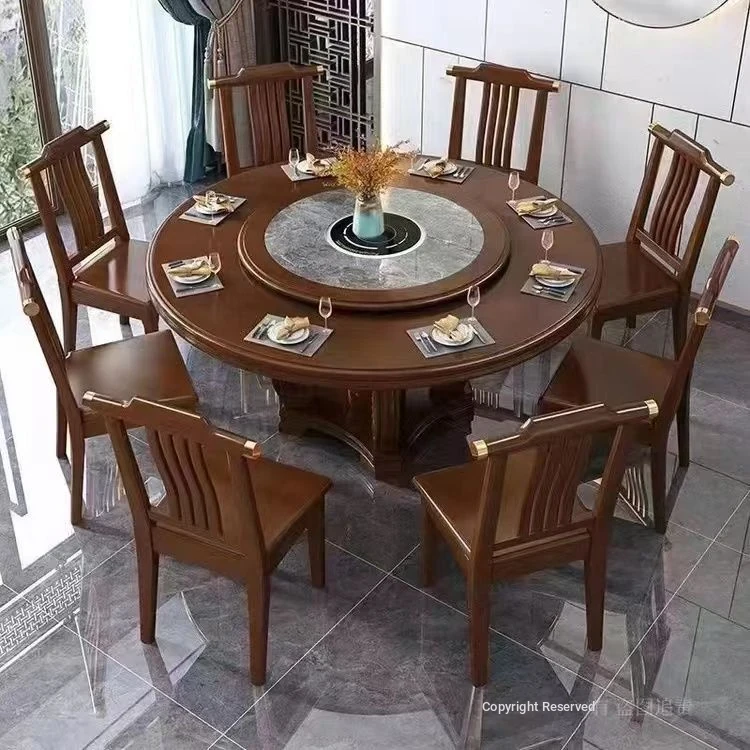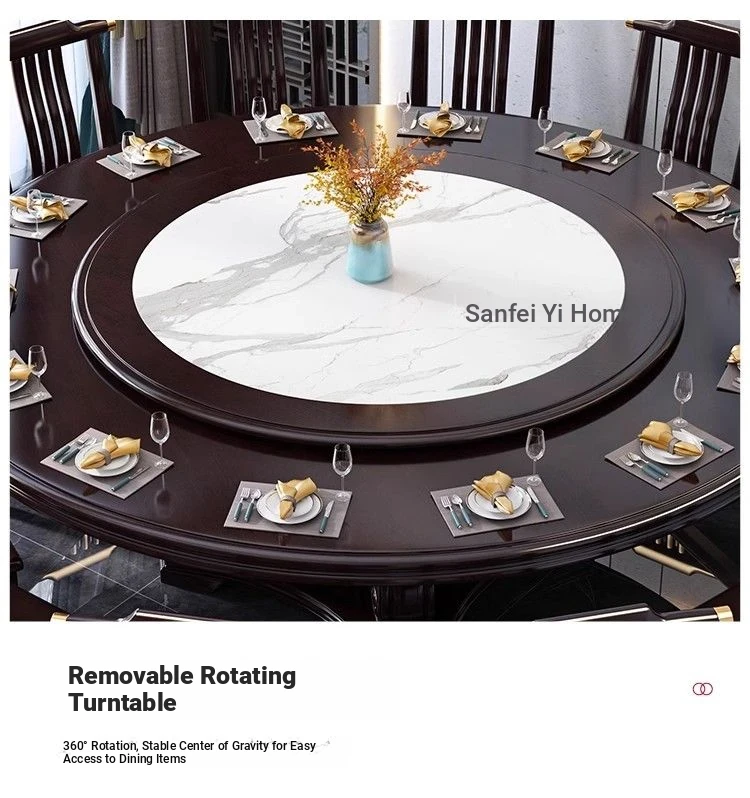 Elegant Chinese Solid Wood Dining Table Set with Round Rock Plate - Perfect for Home and Restaurants, Featuring a Stylish Rotating Design for Easy Sharing and Enjoyment.