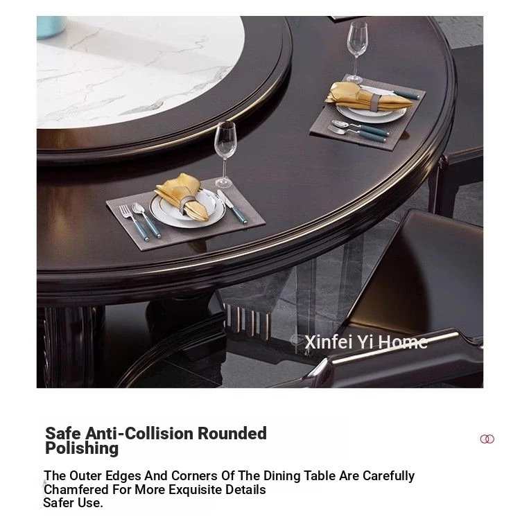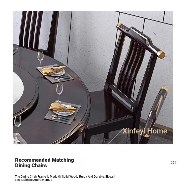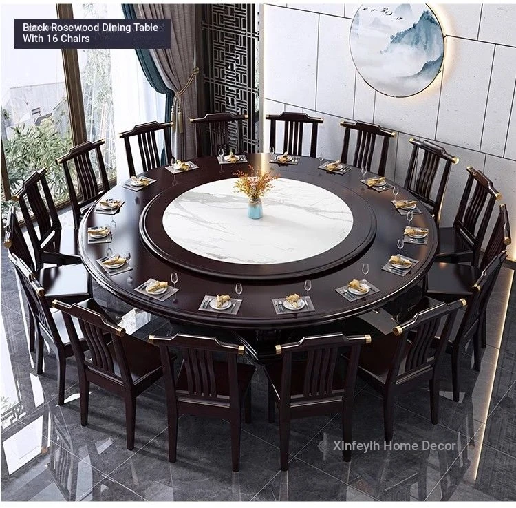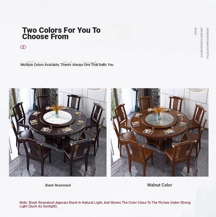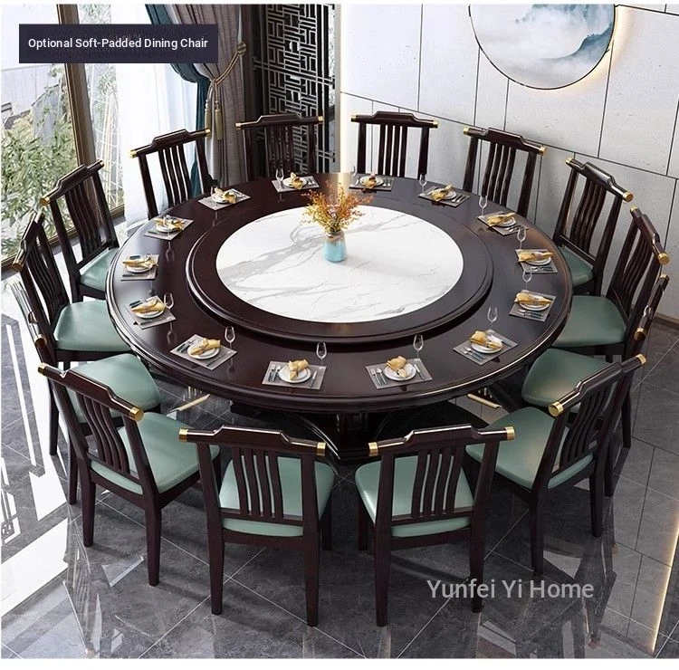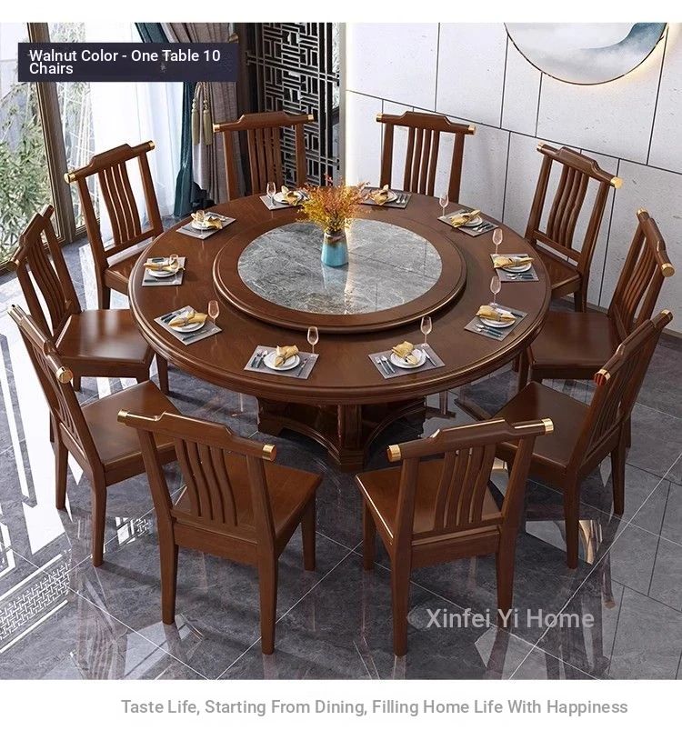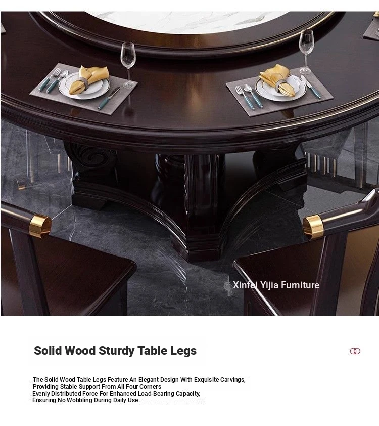Elegant Chinese Solid Wood Dining Table Set with Round Rock Plate - Perfect for Home and Restaurants, Featuring a Stylish Rotating Design for Easy Sharing and Enjoyment.