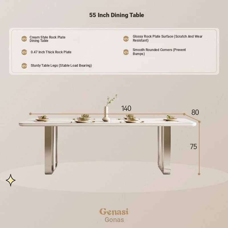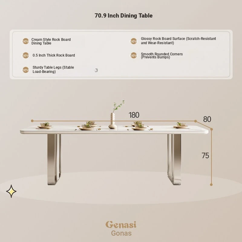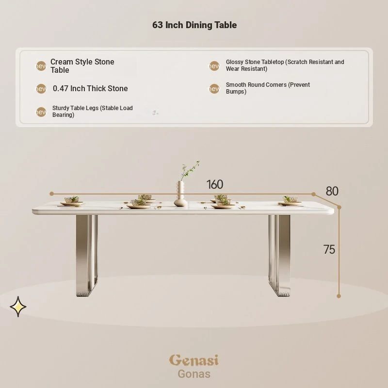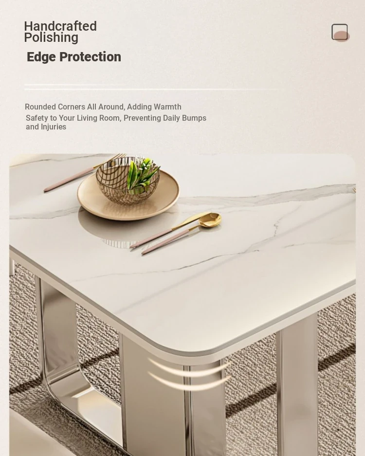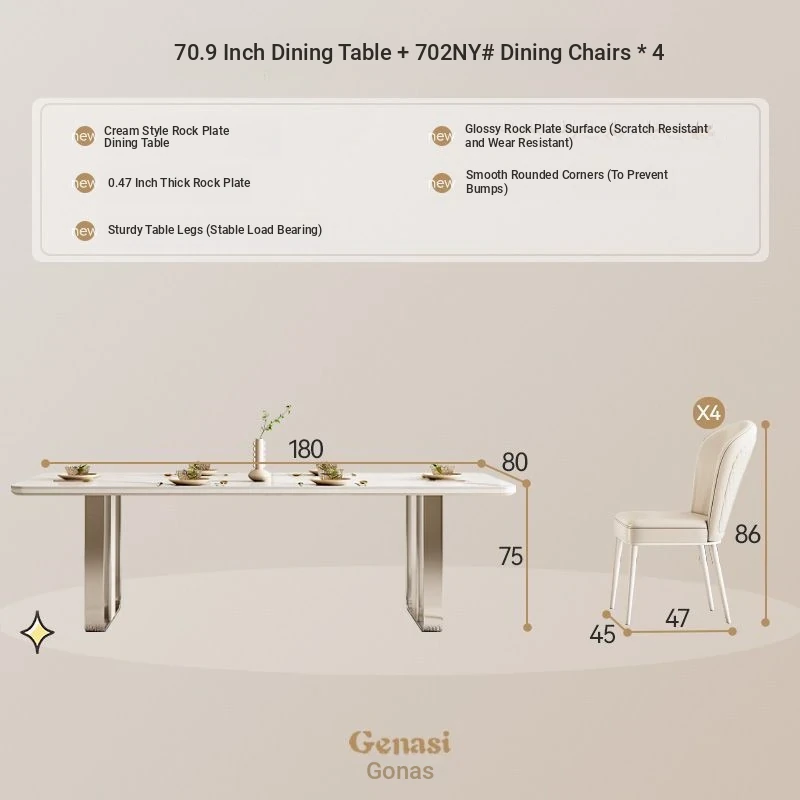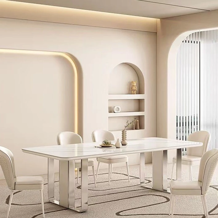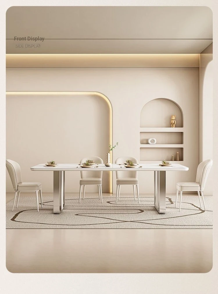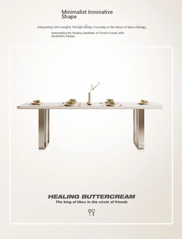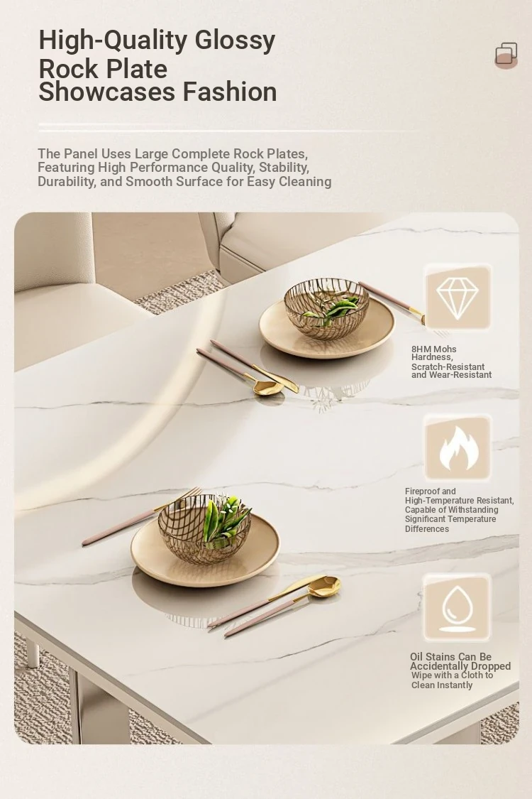 Elegant Creamy Glossy Marble Dining Table Set - Modern Minimalist Design for Small Spaces, Perfect for Luxe Home Décor, Featuring Stylish Rectangular Table and Chairs.