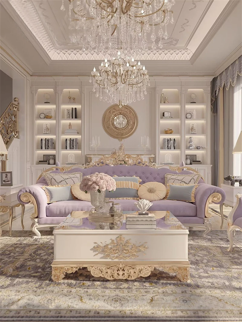 Elegant French Court Style Solid Wood Carved Living Room Sofa Set - High-End Fashionable New Luxury Neo-Classical Furniture Collection