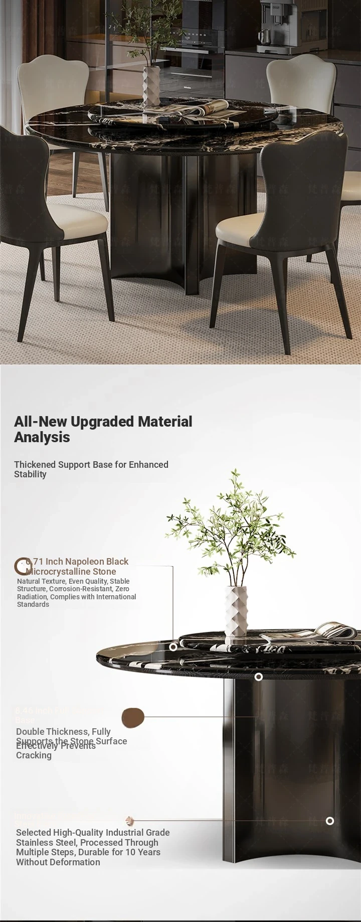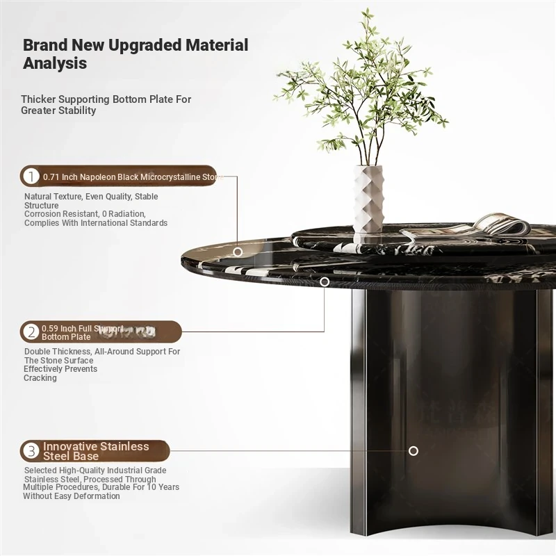 [Upgraded Full-support] Napoleon Black Natural Microlite Dining Table + Turntable