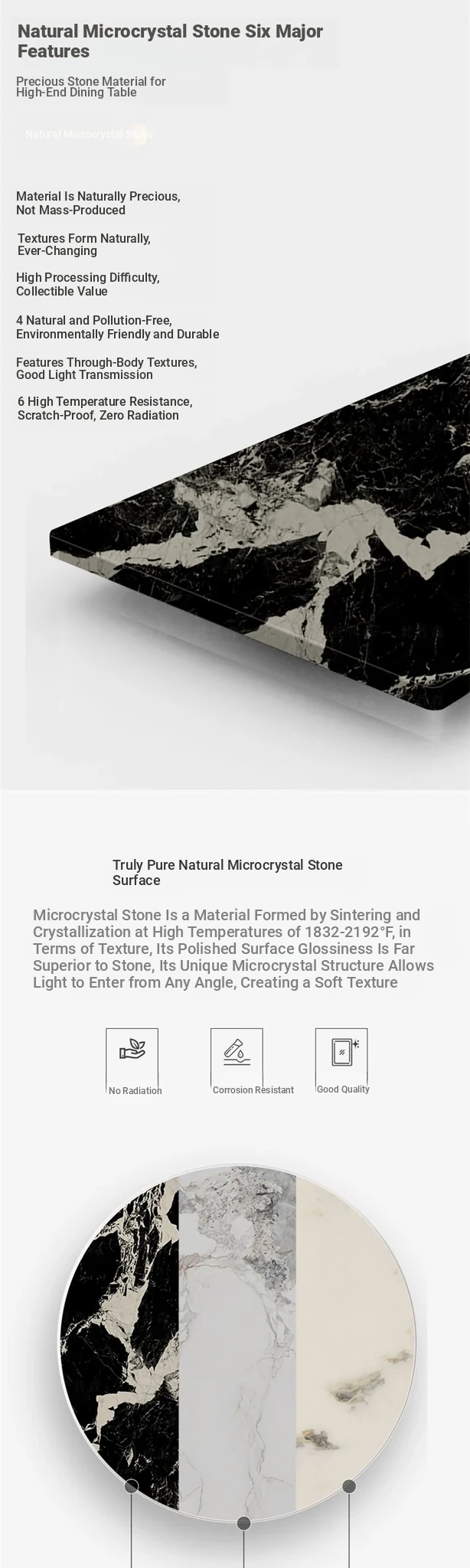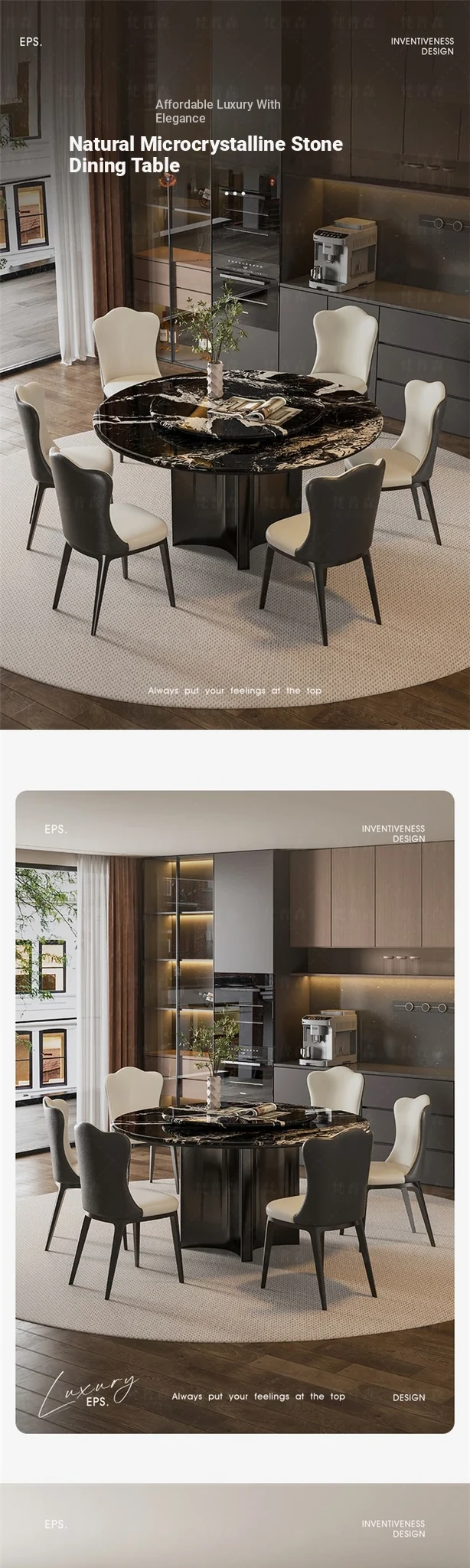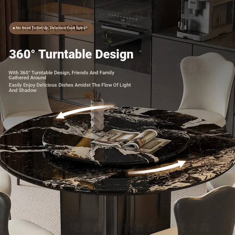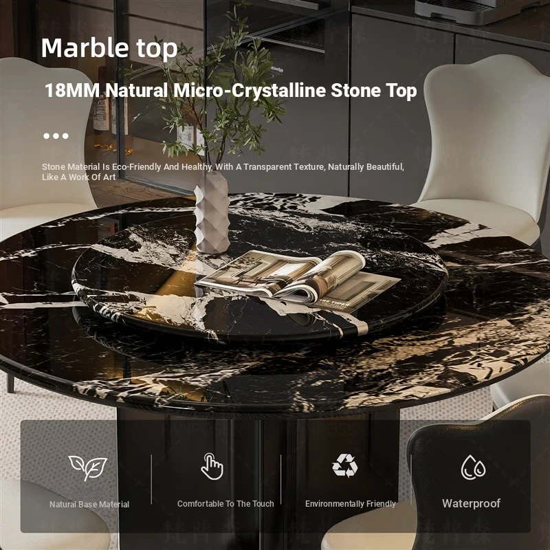 Elegant Italian-Inspired Natural Microcrystalline Stone Round Dining Table with Rotating Base - Premium Marble Finish and Stylish Chairs