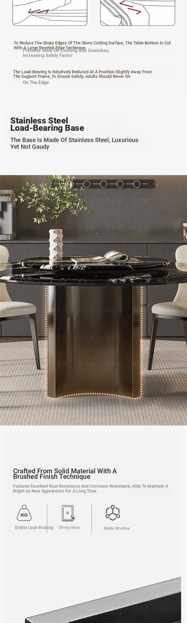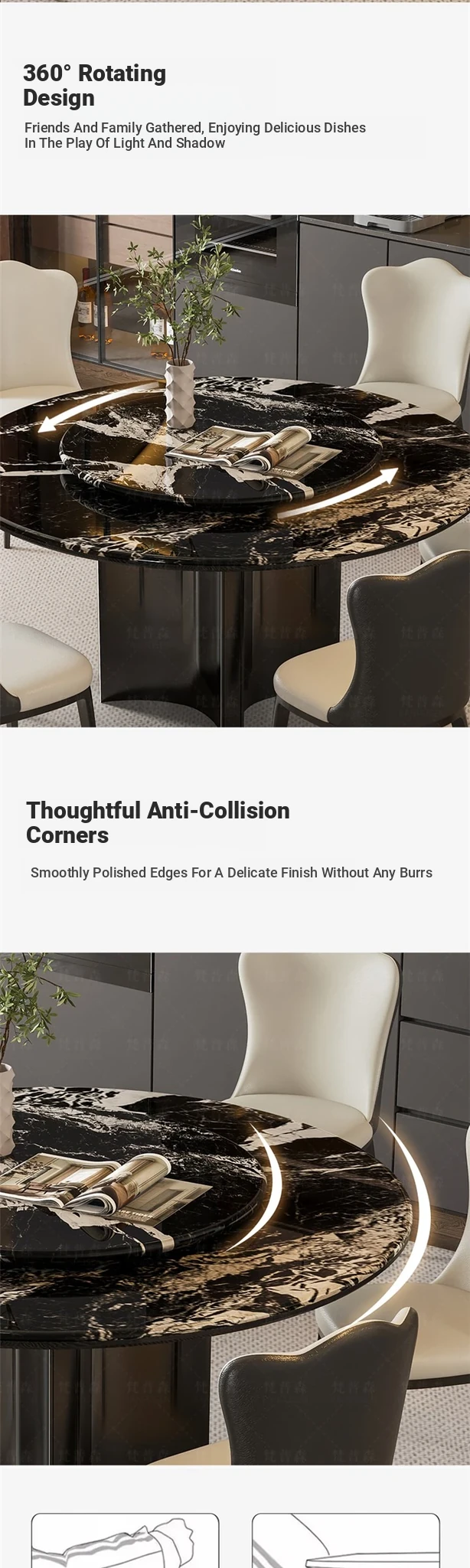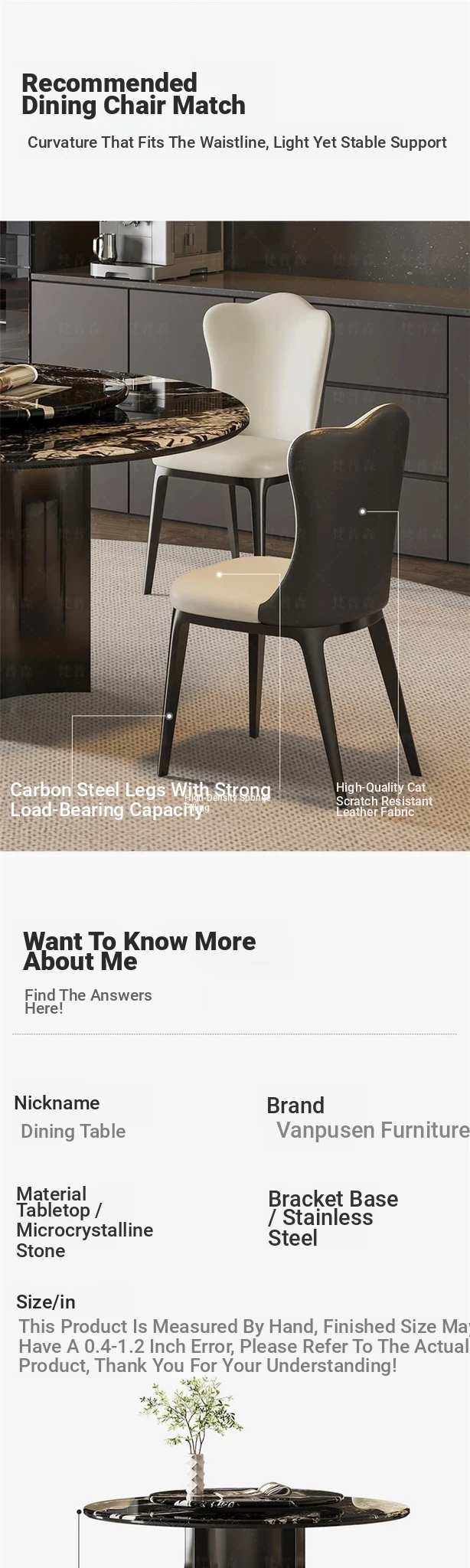 [Upgraded Full-support] Napoleon Black Natural Microlite Dining Table + Turntable + Cat Scratch Leather Dining Chair * 4
