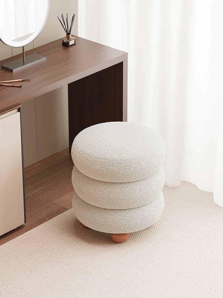 Elegant Makeup Stool - Minimalist Bedroom Vanity Chair, Compact Round Seat for Home, Living Room Sofa Footrest, and Entryway Shoe Changing Bench. Perfect for Stylish Interiors!