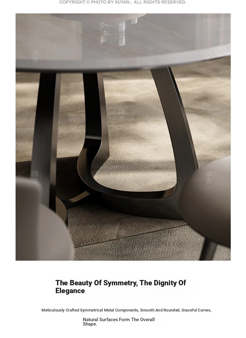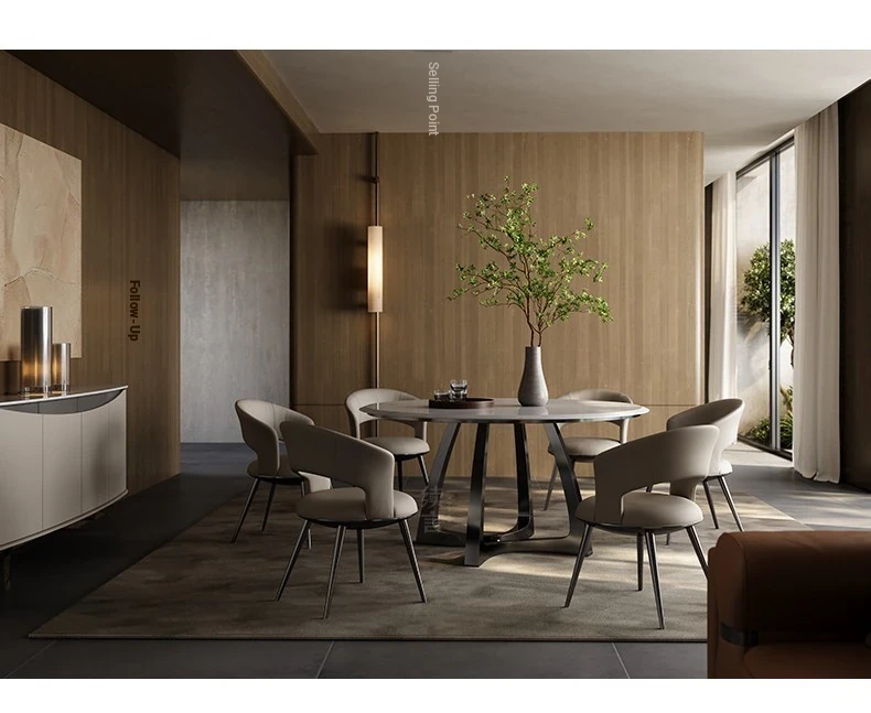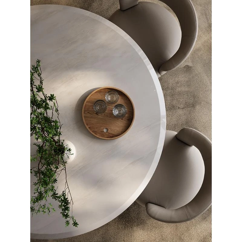 Elegant Natural Stone Dining Table Set - Round Marble Dining Table with Chairs for Luxury Apartments and Villas, Perfect for Family Meals