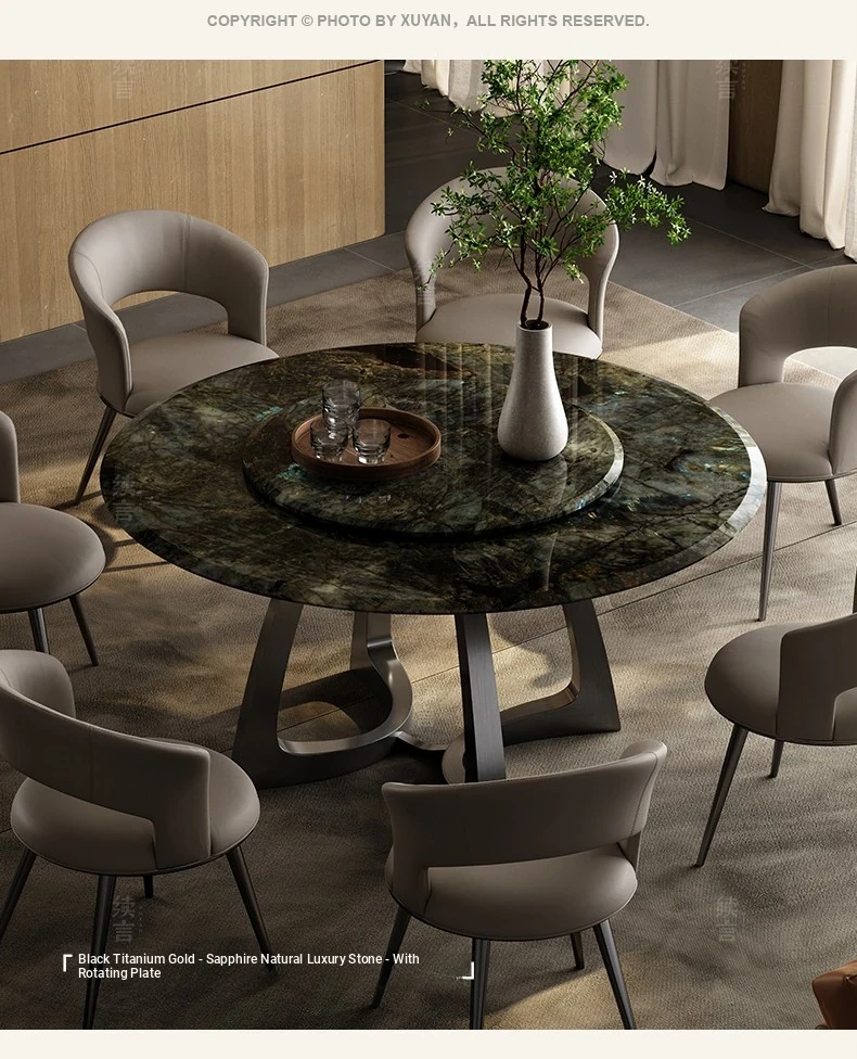 Dining table/51.18in/Sapphire luxury stone + turntable/black titanium gold