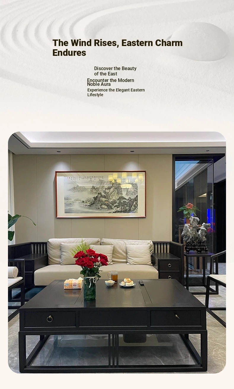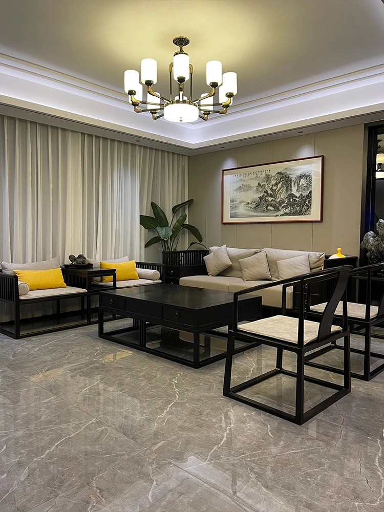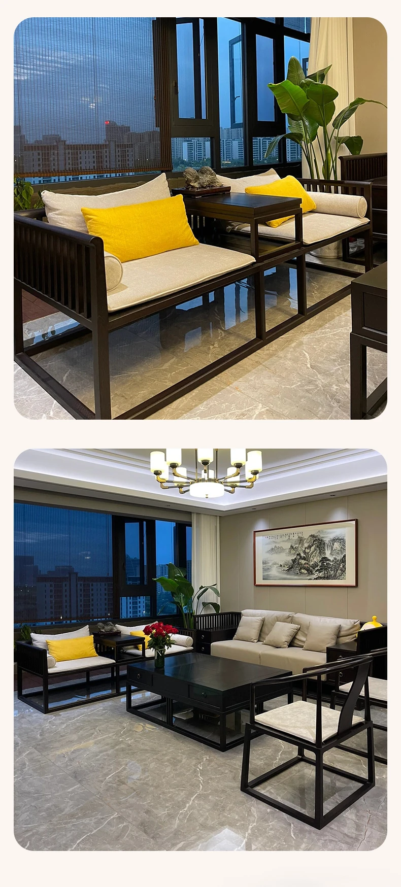 Elegant New Chinese Style Blackwood Sofa Set - Luxurious Solid Wood Living Room Furniture for Spacious Villas, Perfect for Year-Round Comfort in Both Winter and Summer.