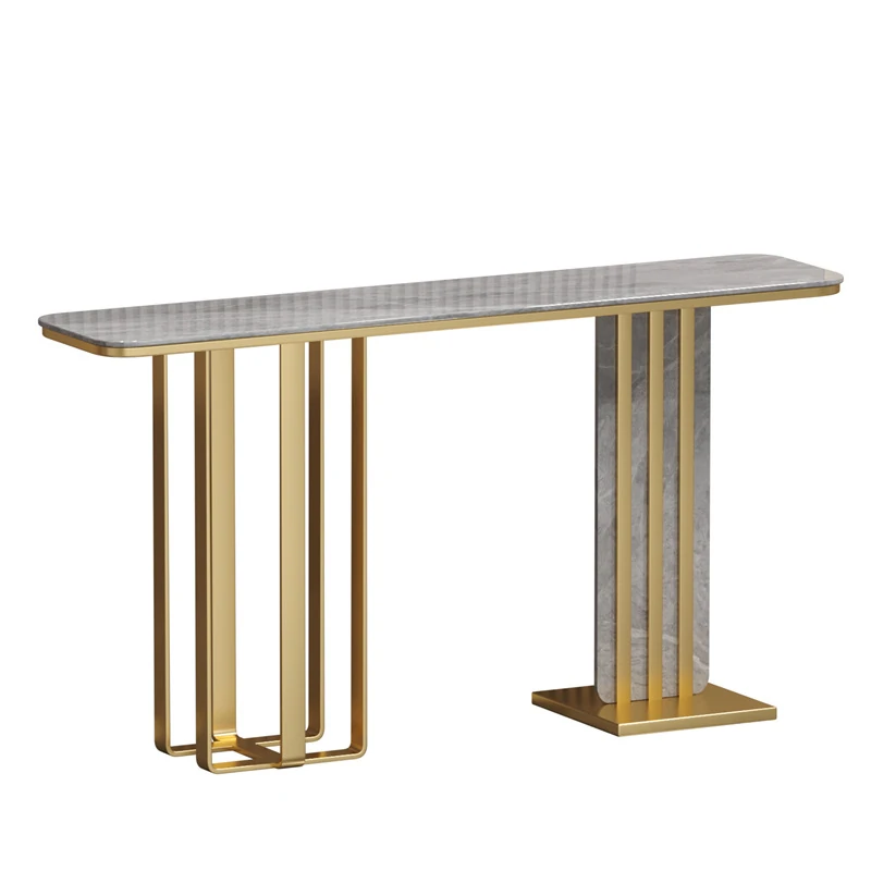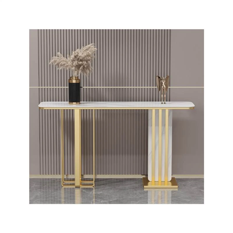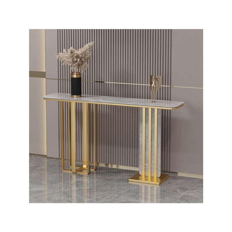 Elegant Stainless Steel Rock Plate Console Table - Stylish Entryway Table for Home or Hotel Hallways, Perfect for Welcoming Guests and Enhancing Your Entrance Décor.