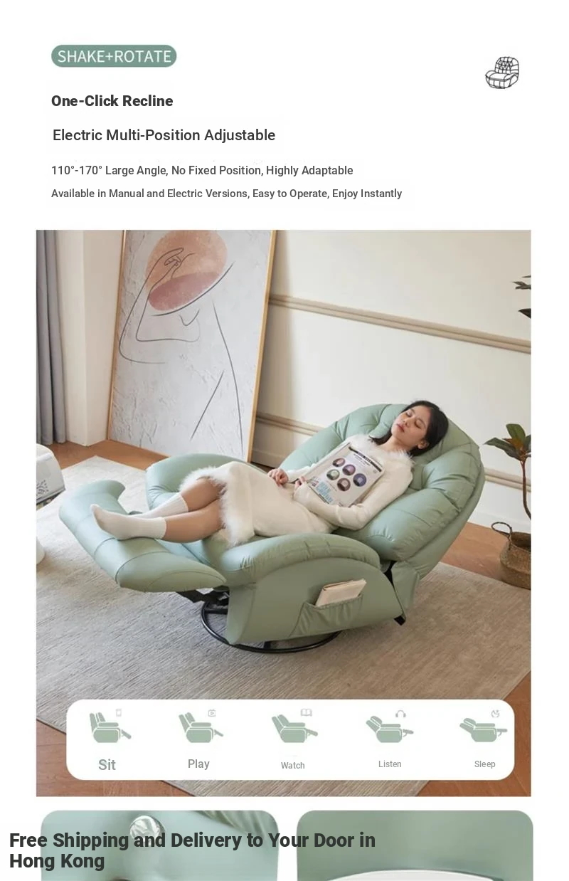 【Free Shipping in Hong Kong】Multi-Functional Space Lazy Sofa Pod Rocking Chair for Home, Luxury Nordic Electric Single Seat – Perfect for Your Living Room Comfort!