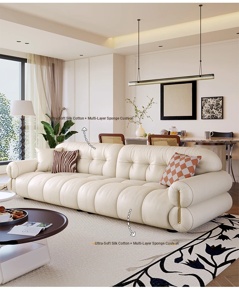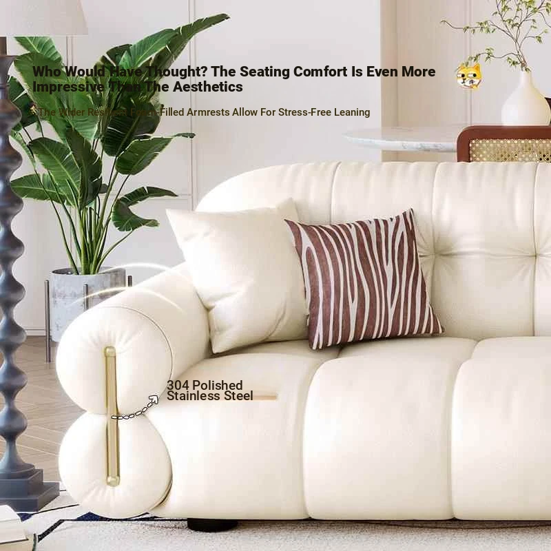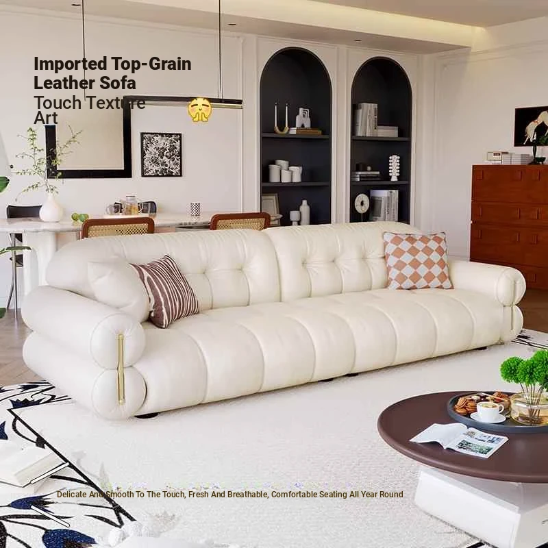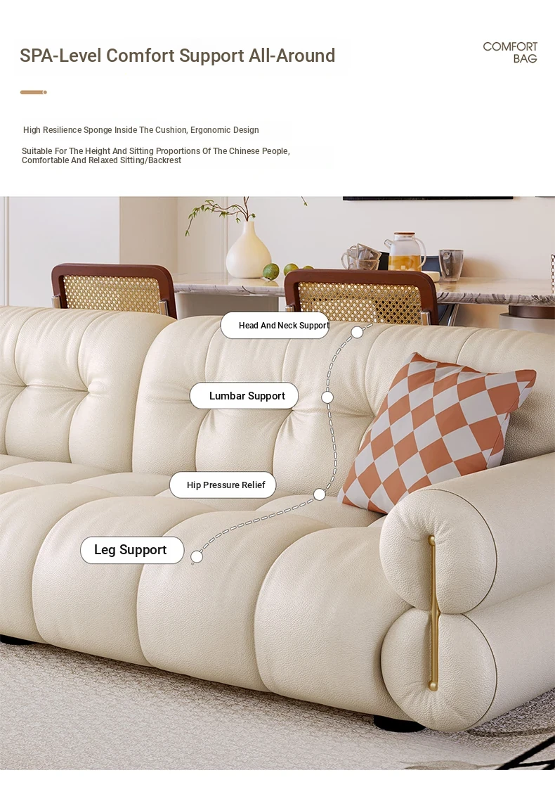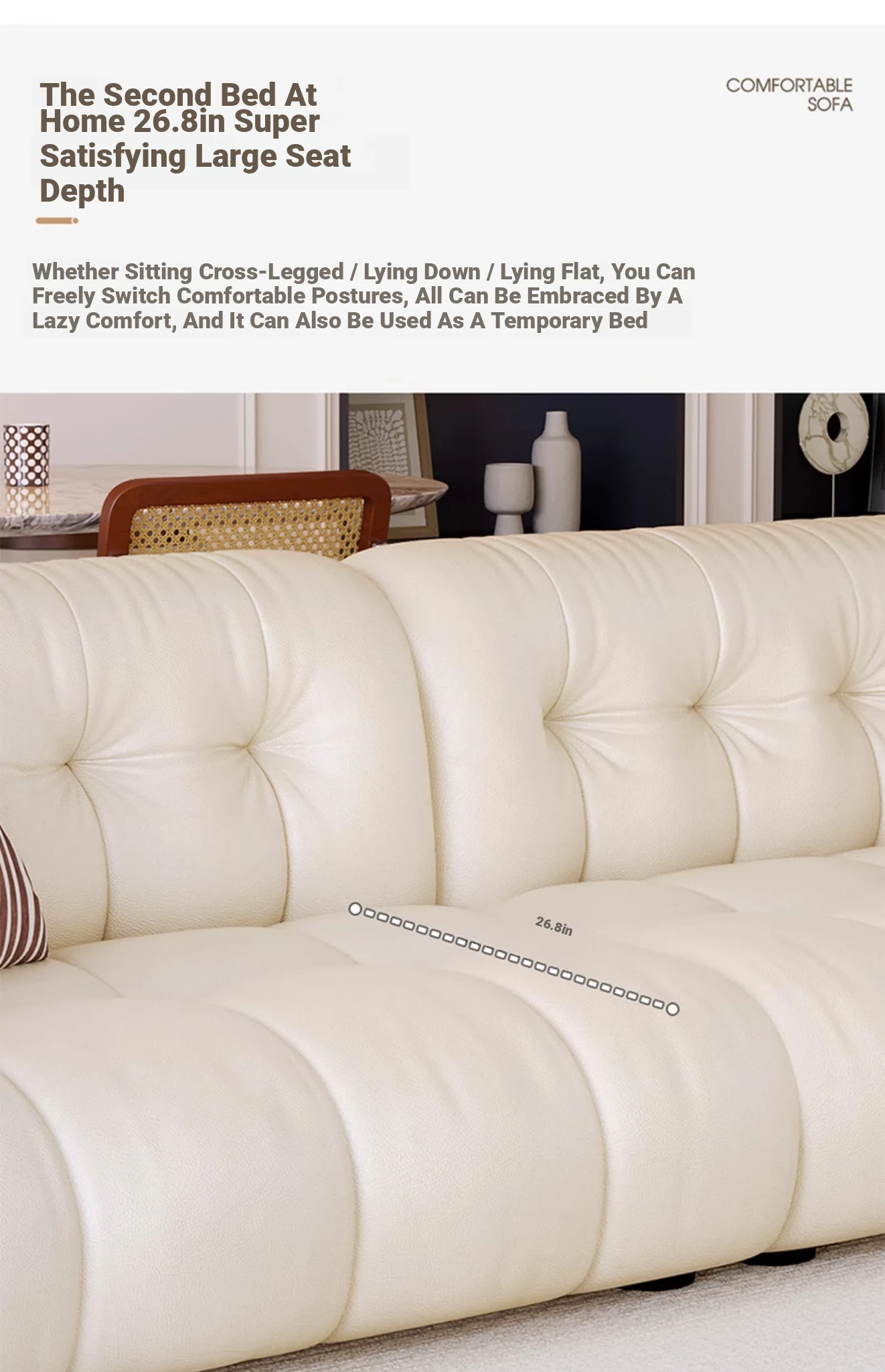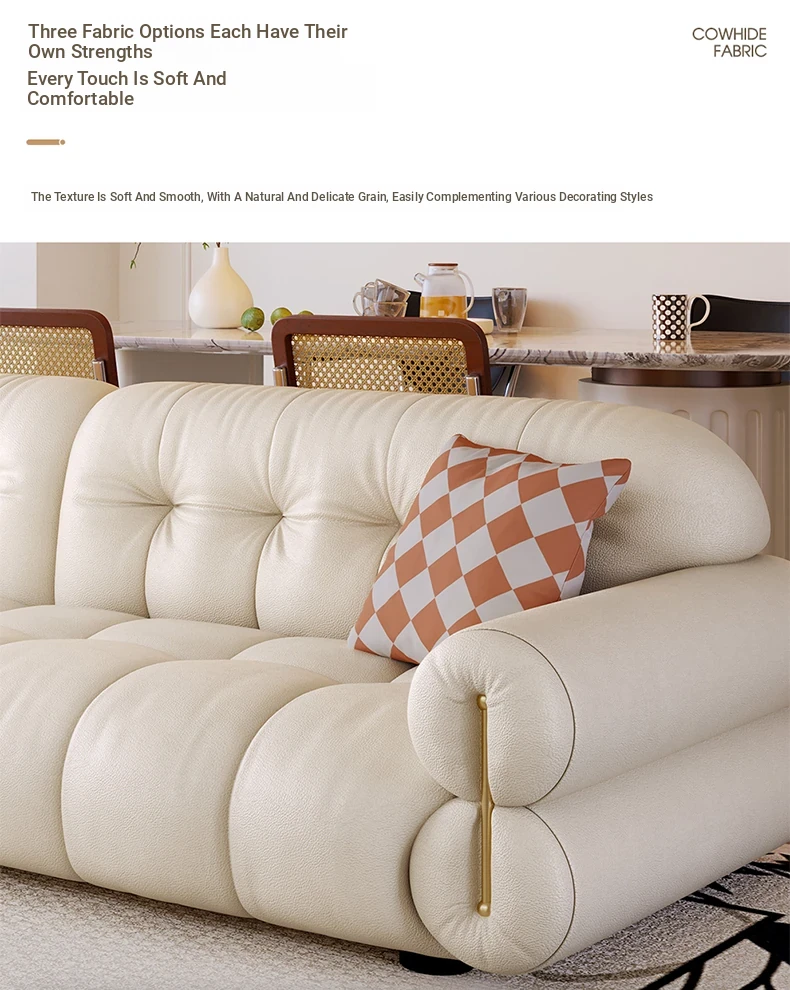 【Free Shipping to Hong Kong】2024 New Arrival Modern Minimalist Genuine Leather Sofa for Small Spaces - French Cream Style with Sweet Caramel Touch