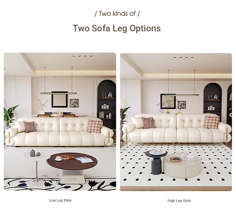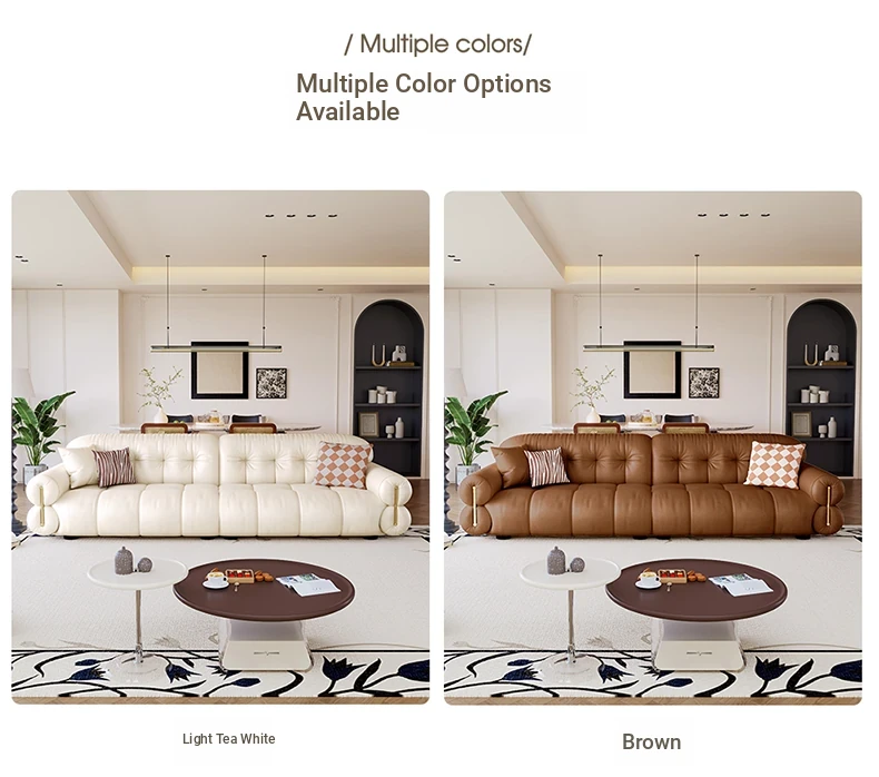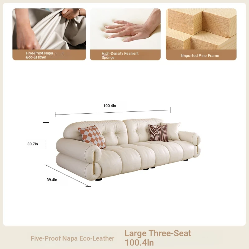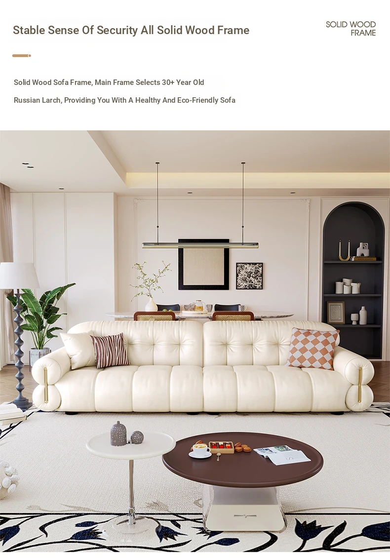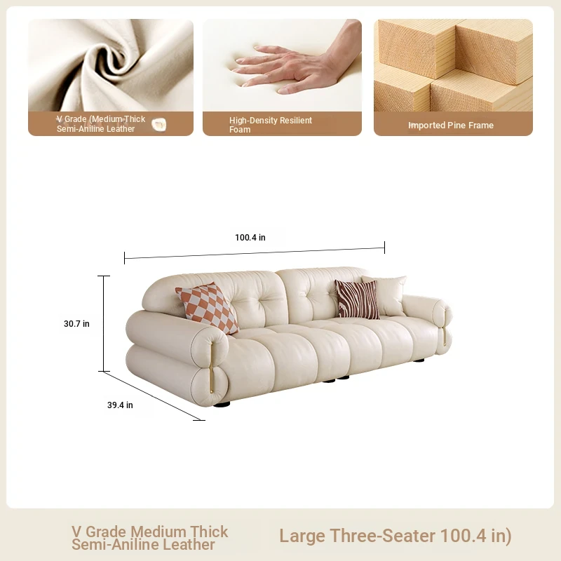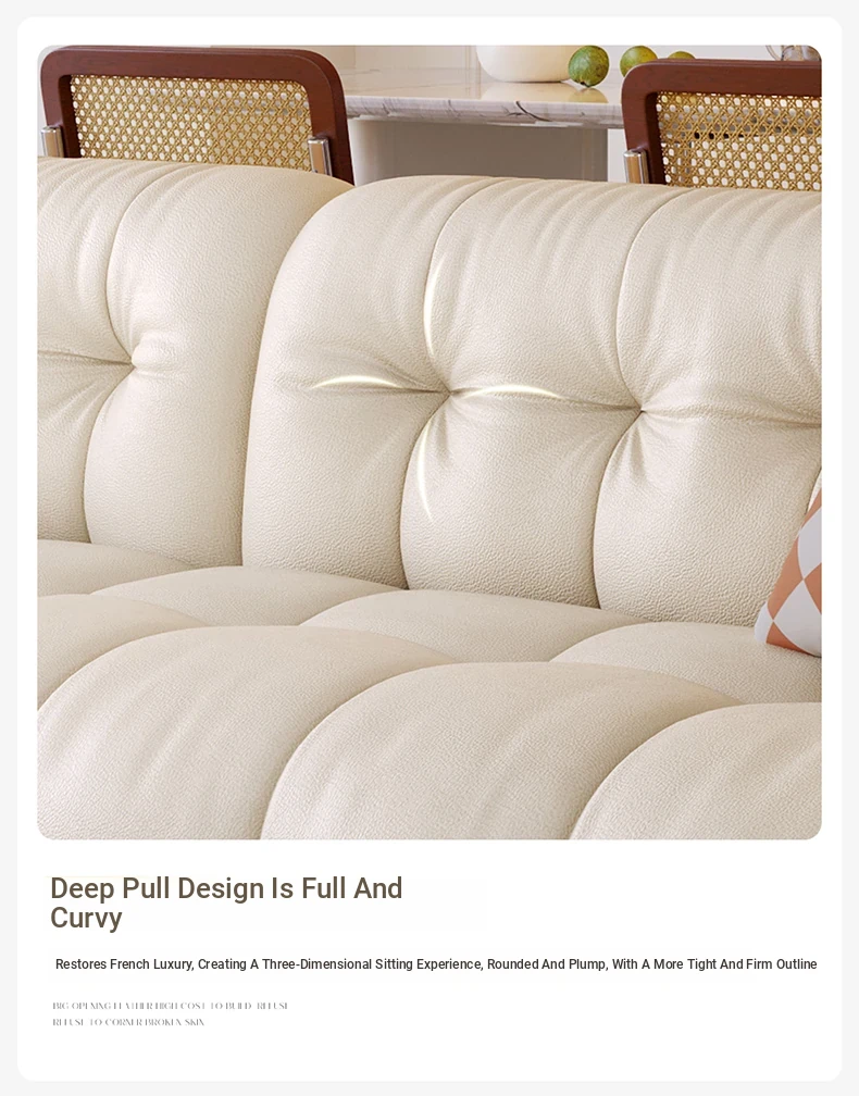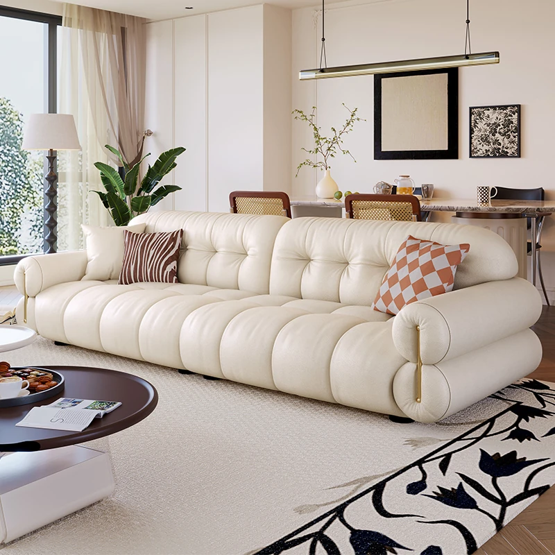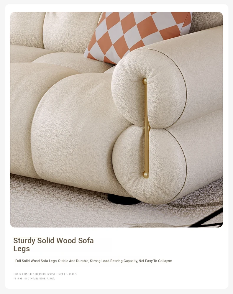 【Free Shipping to Hong Kong】2024 New Arrival Modern Minimalist Genuine Leather Sofa for Small Spaces - French Cream Style with Sweet Caramel Touch