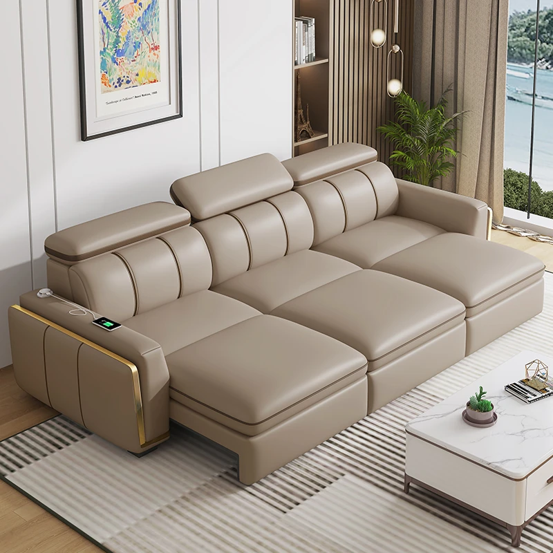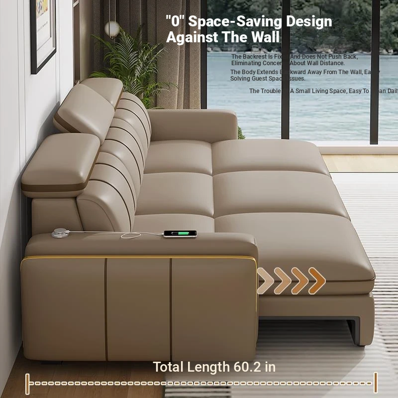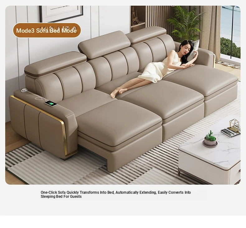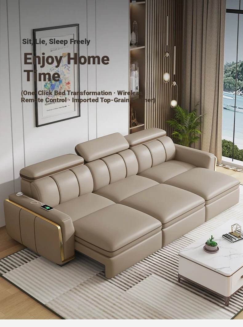 【Free Shipping to Hong Kong】2025 New Arrival Genuine Leather Sofa Bed - Space-Saving Multifunctional Foldable Design for Small Living Rooms, Perfect for Comfort and Style!