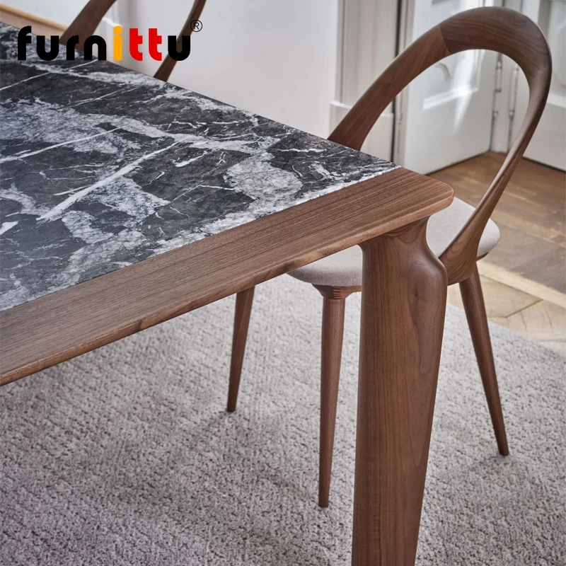 Furnittu Creative Designer Furniture - Nordic Solid Wood AMPHORA Double-Ear Marble Top Dining Table - Elevate Your Dining Experience with Timeless Elegance!