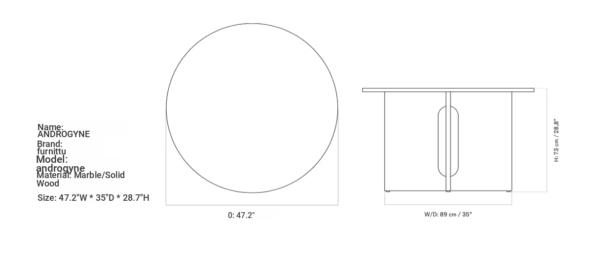 Furnittu Creative Designer Furniture - Nordic Style Marble & Solid Wood Androgynous Dining Table for Living Room and Dining Room
