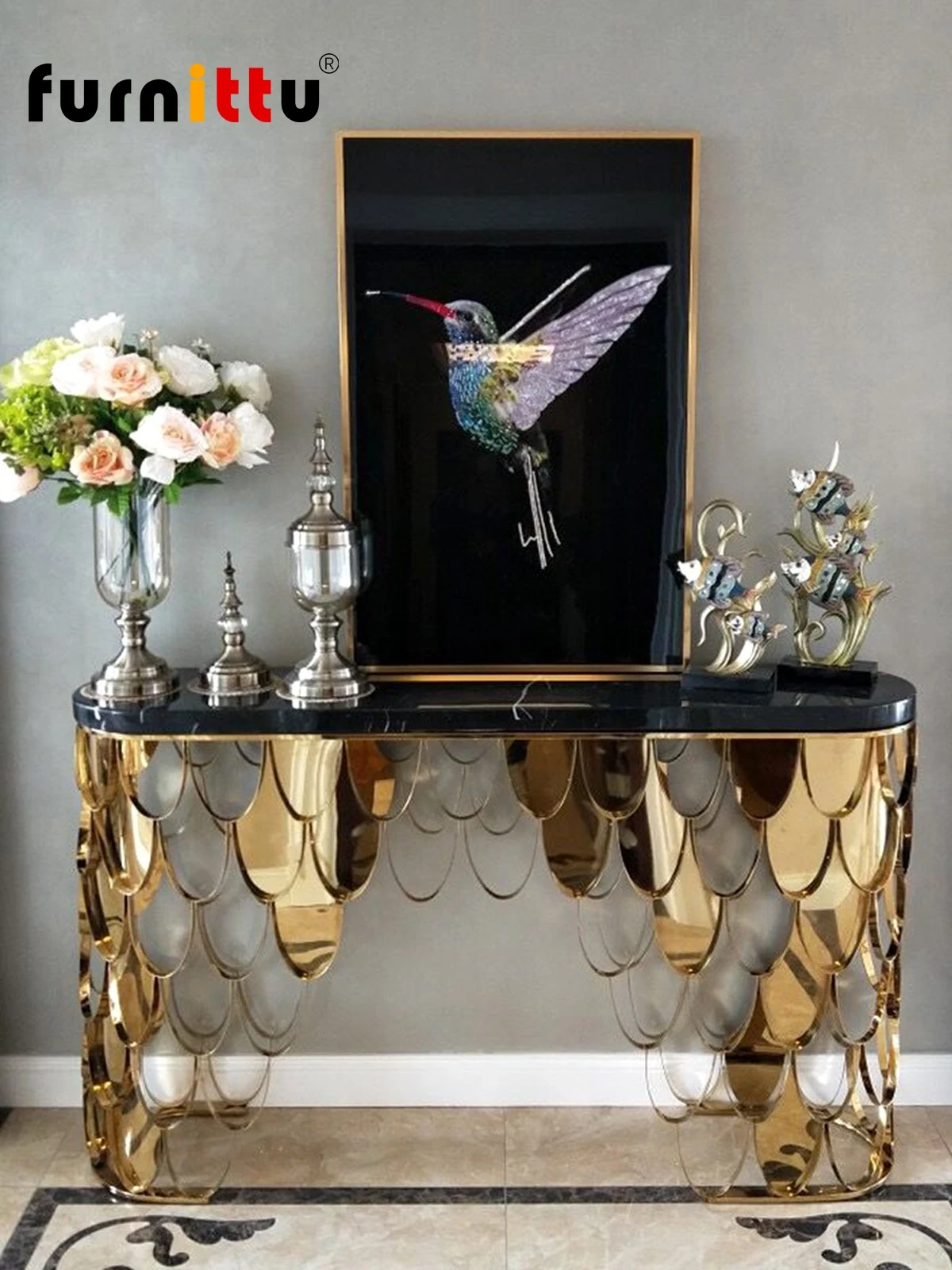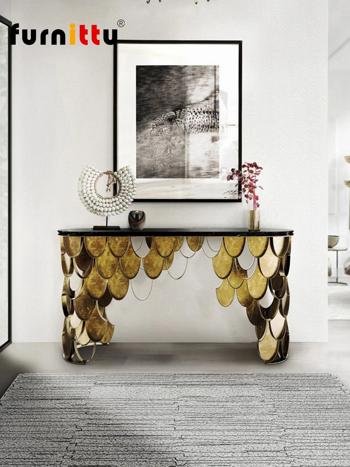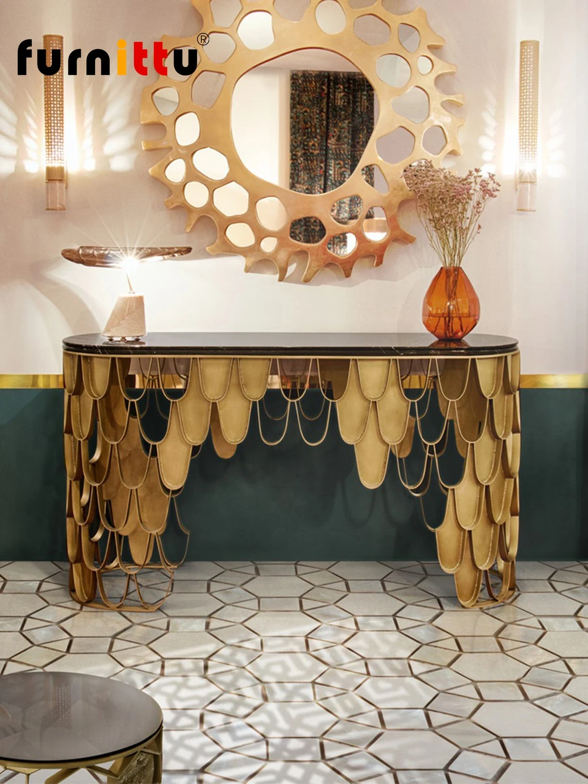 Furnittu Designer Furniture - Kol Table: Creative High-End Marble and Metal Round Dining Table with Koi Design