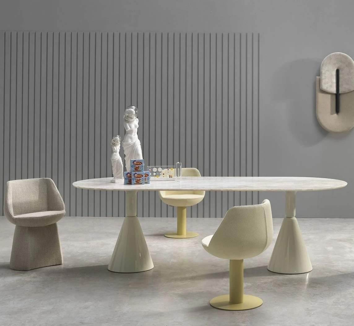 In-Stock Y:CUBE SANCAL Pion Series Multi-Functional Oval Marble Dining Table - Imported from Spain, Elegant Design for Stylish Dining Experience