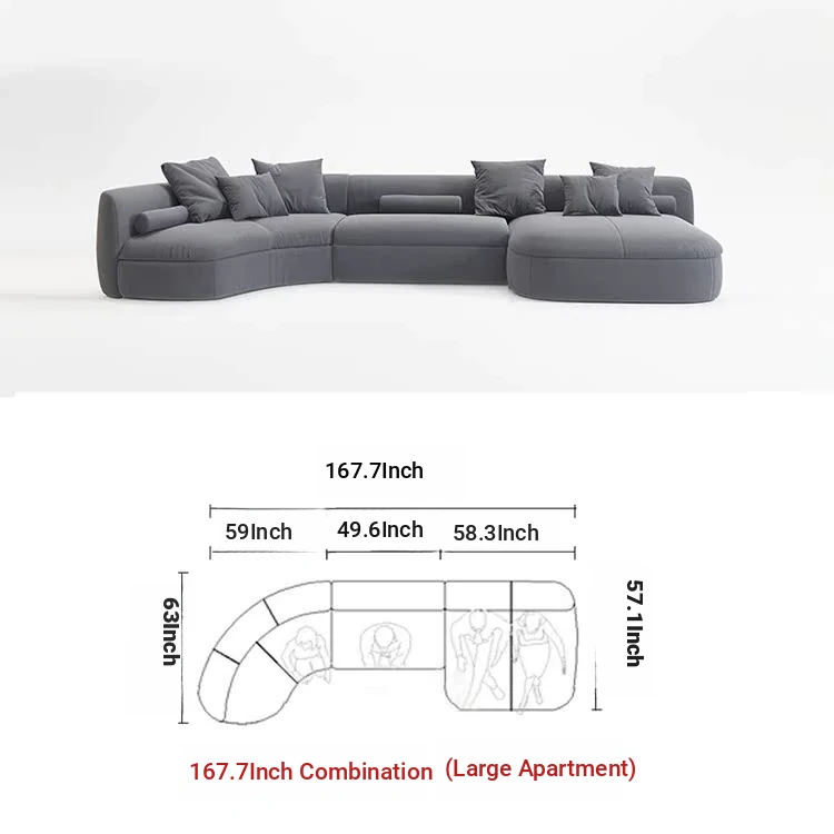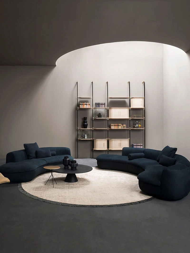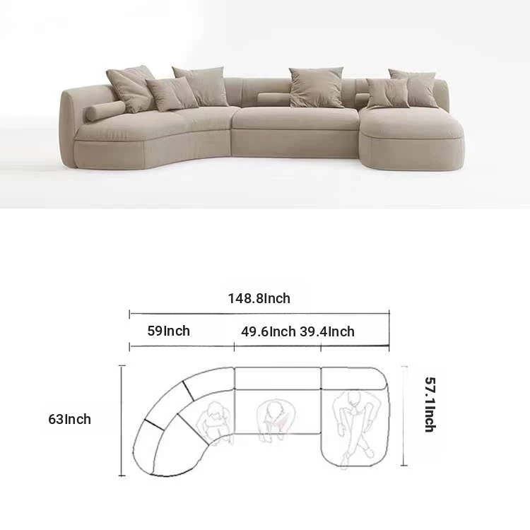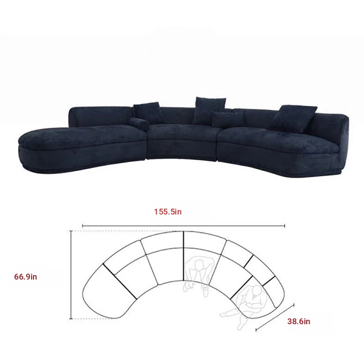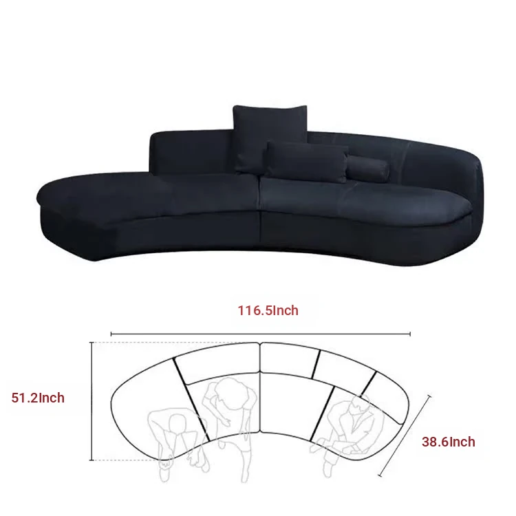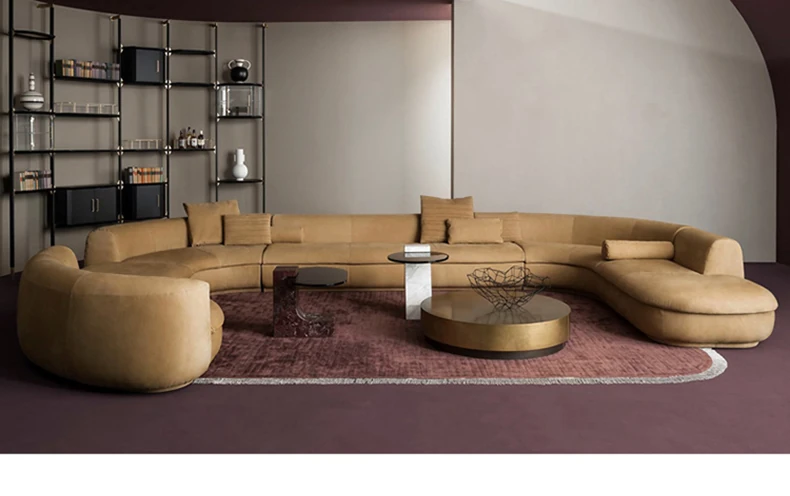 Italian Designer Baxter Curved Sofa with Soft-Finish Fabric - Unique Piaf Style for Luxurious Villa Living Rooms