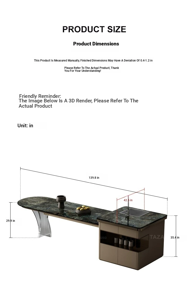 138.98in Poseidon Sapphire Luxury Stone Island Table Table