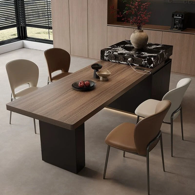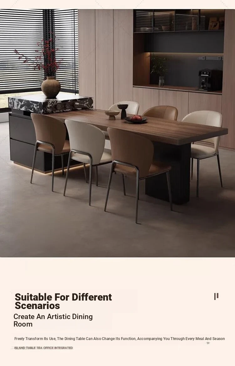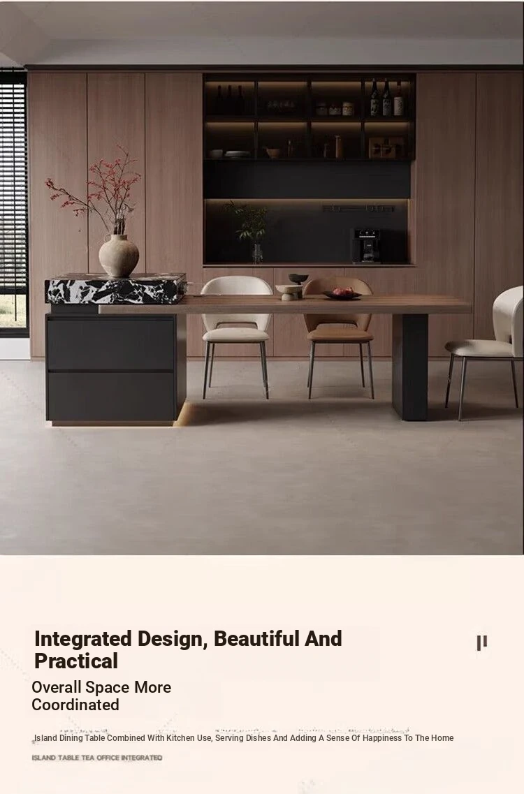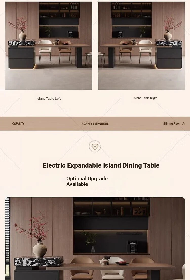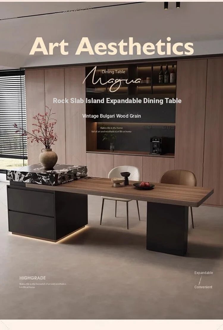Italian Minimalist Expandable Island Table – Versatile Dining Table with Wood Grain Rock Plate for Spacious Homes