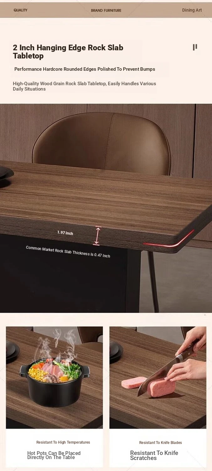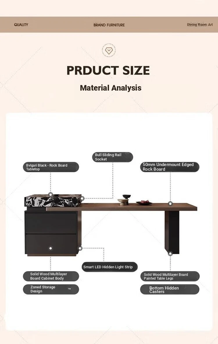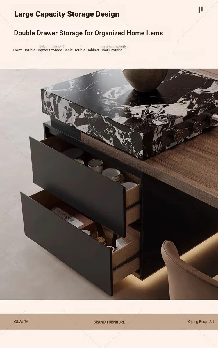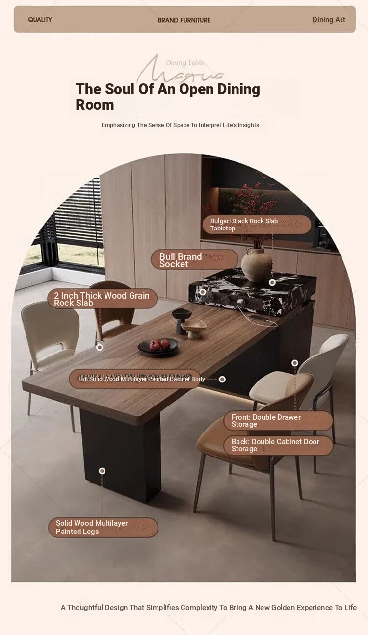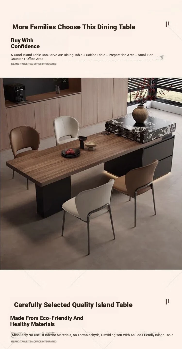 Italian Minimalist Expandable Island Table – Versatile Dining Table with Wood Grain Rock Plate for Spacious Homes