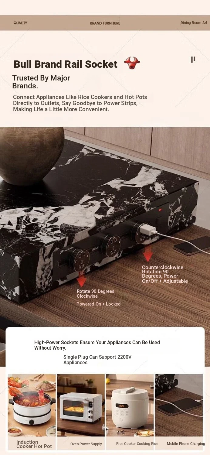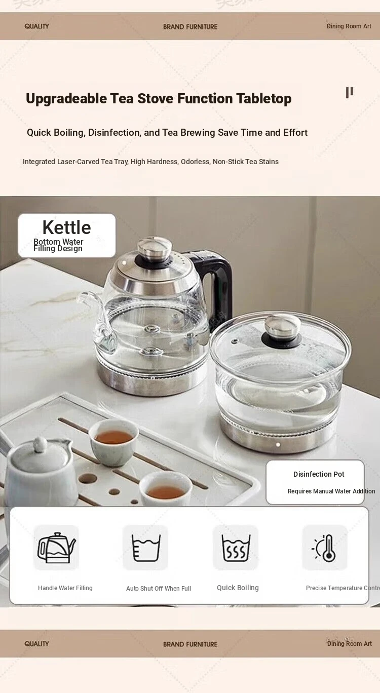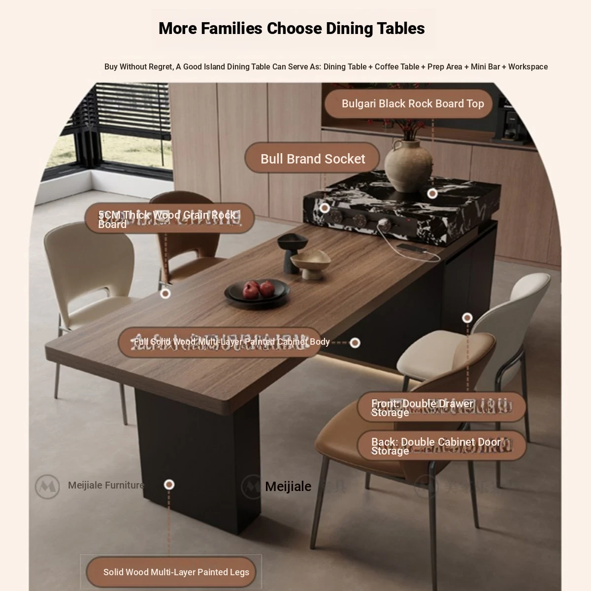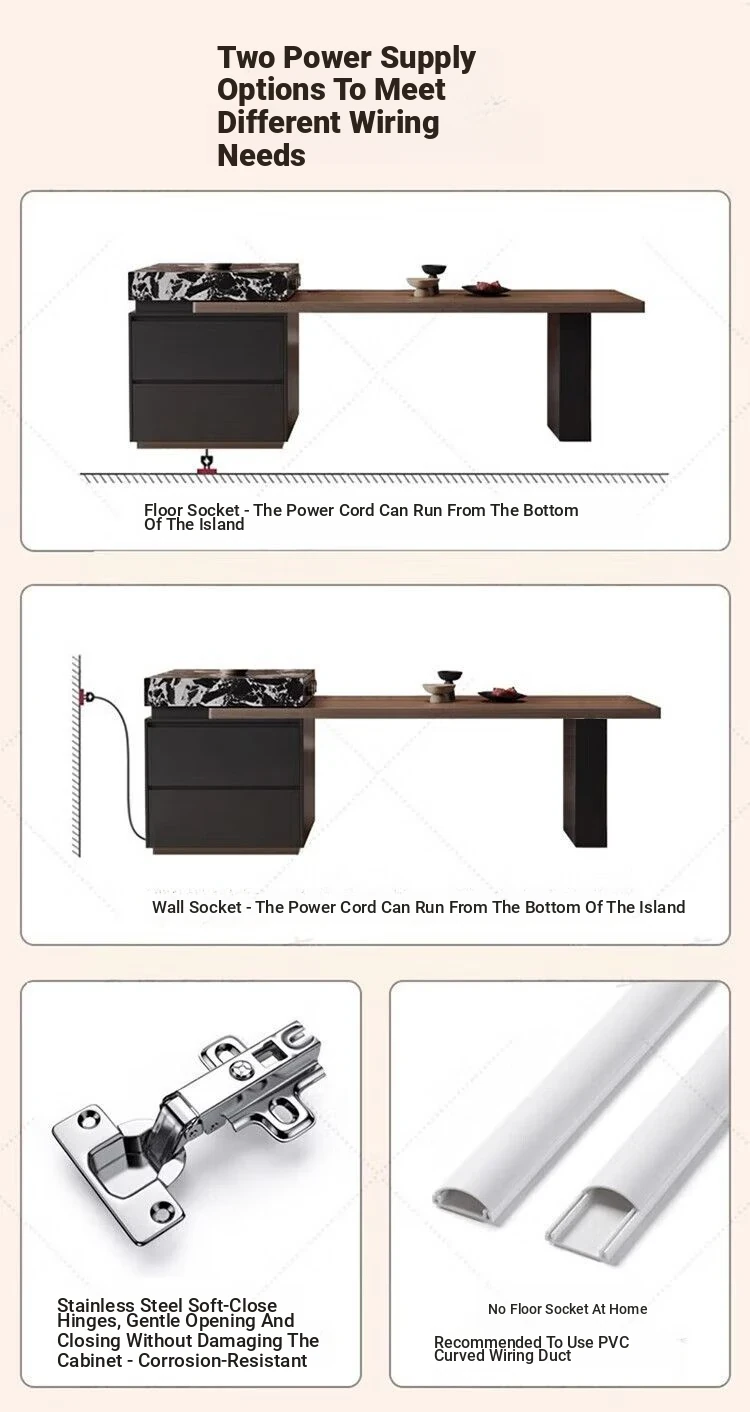 Italian Minimalist Expandable Island Table – Versatile Dining Table with Wood Grain Rock Plate for Spacious Homes