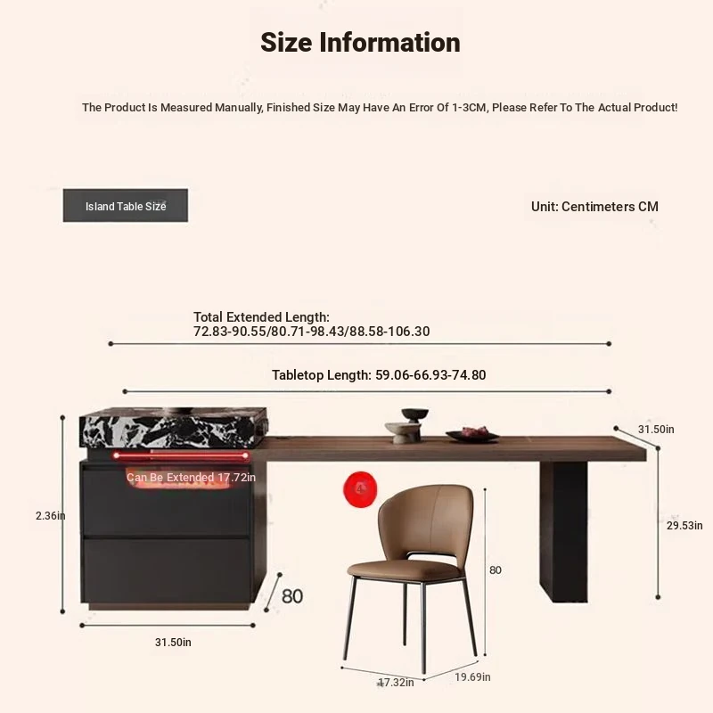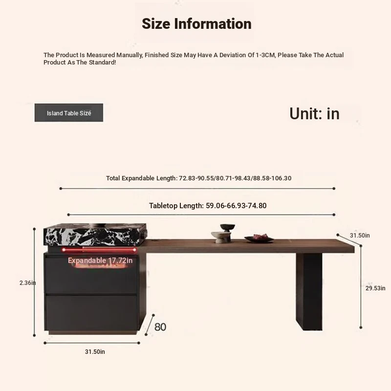 80.71in-98.43in retractable [Hanging Rock board under desktop]/island table table [solid wood multilayer board]]