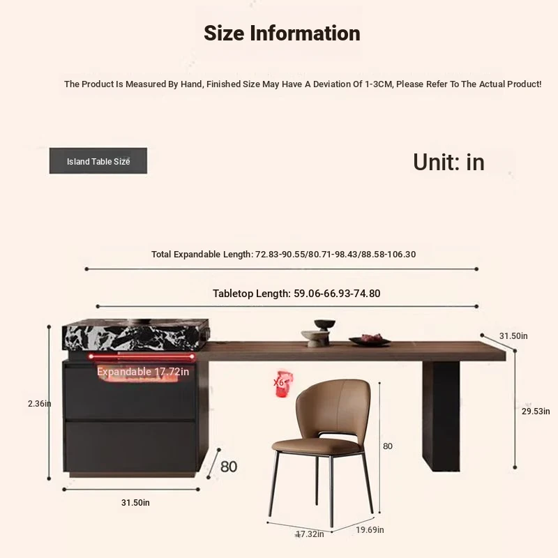 72.83in-90.55in retractable [Hanging Rock board under desktop]/island table +6 chairs [solid wood multilayer board]]
