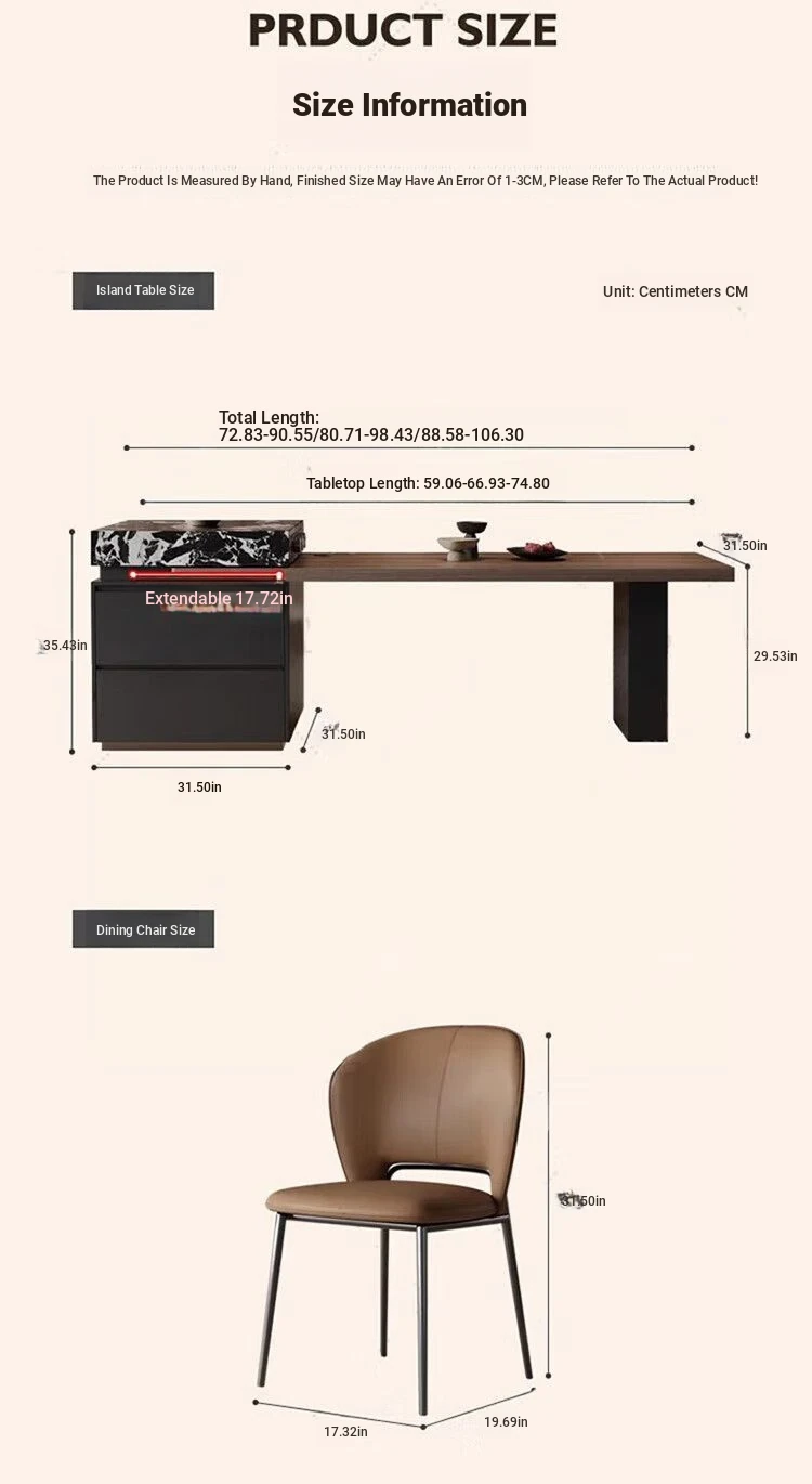 88.58in-106.30in retractable [Hanging Rock board under desktop]/island table +4 chairs [solid wood multilayer board]]