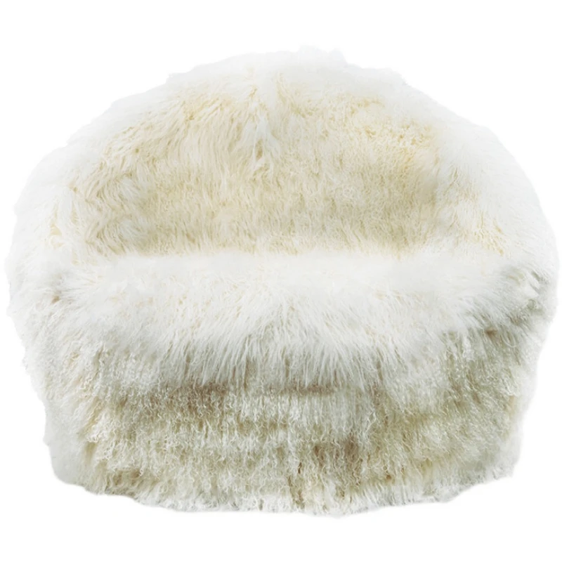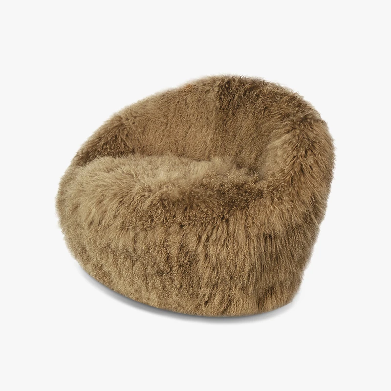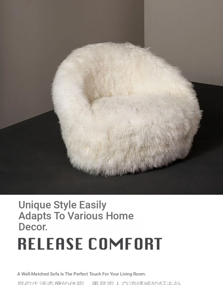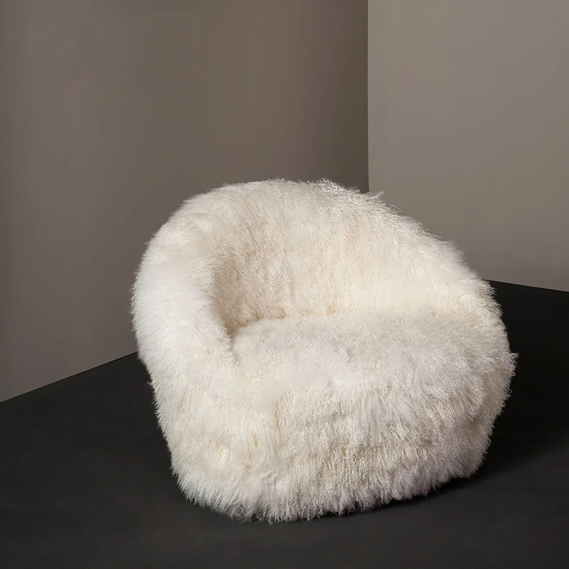 Italian-Inspired Luxury Single Swivel Armchair - Designer Cozy Wool for Bedroom & Balcony - Creative Plush Lounge Chair with Armrests for Relaxation