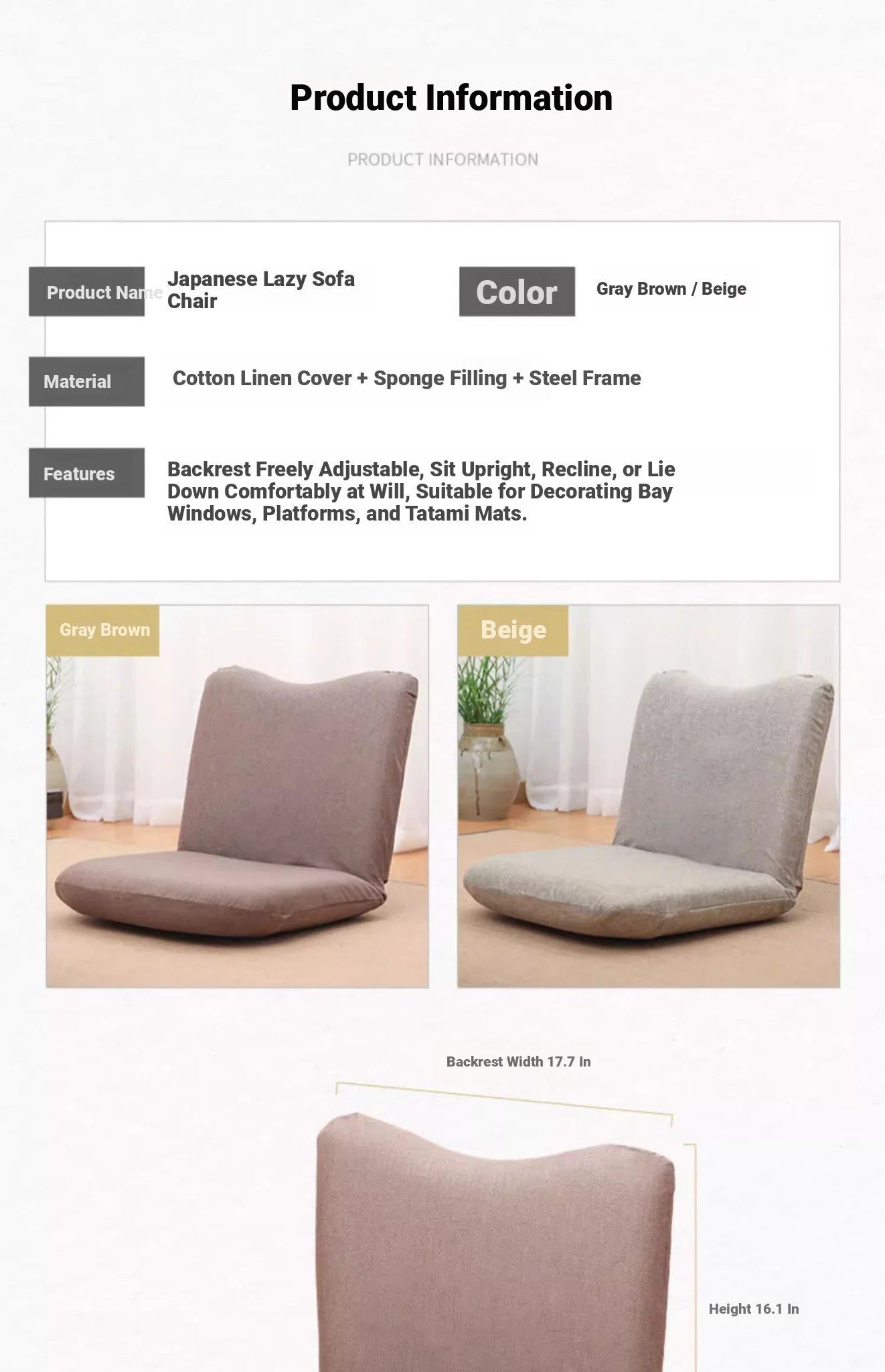 Japanese Lazy Sofa Chair - No Legs, Backrest, Perfect for Balcony, Bed, or Tatami. Ideal for Relaxation, Window Sill Seating, and Cozy Lounging.