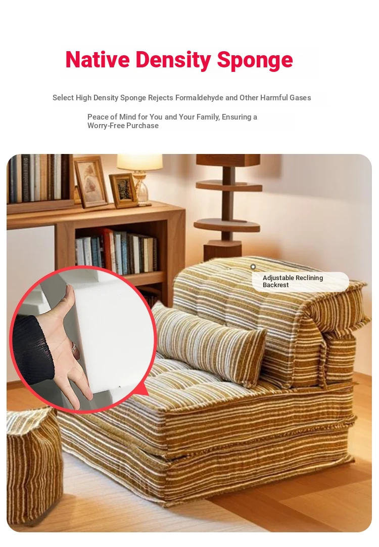Japanese Modular Sofa Set - Convertible Tofu Block Tatami Lazy Sofa, Stylish Single Recliner Chair for Ultimate Relaxation, Trendy and Comfortable Design
