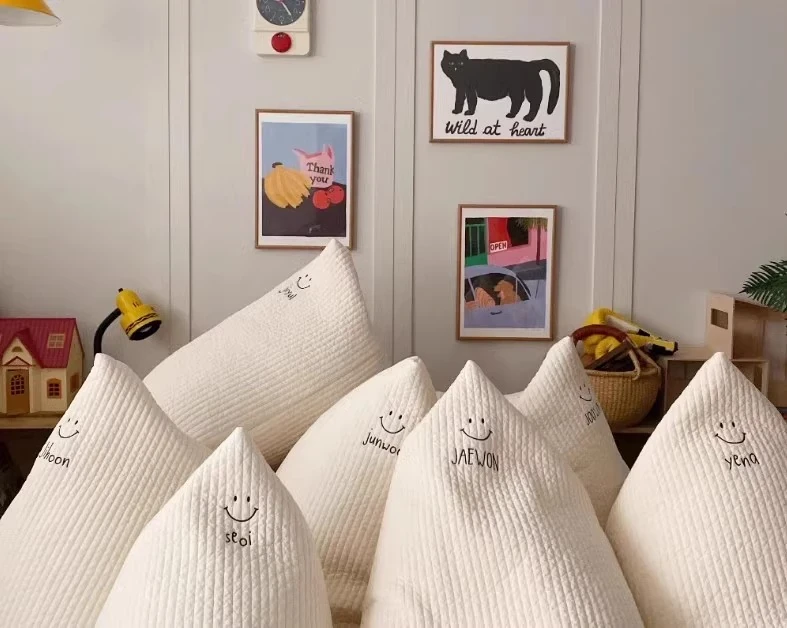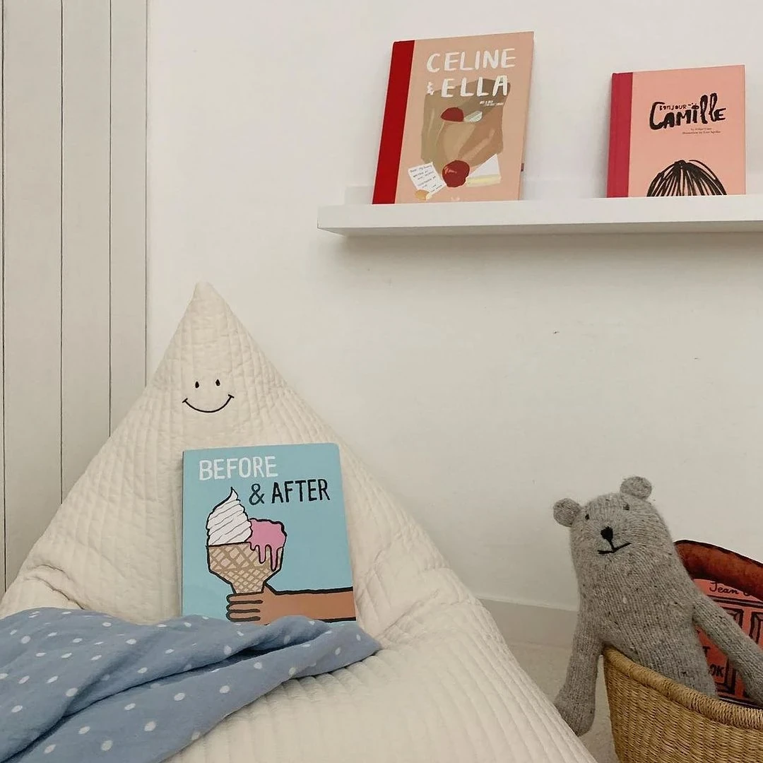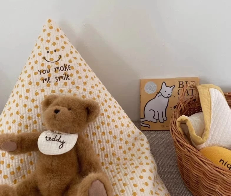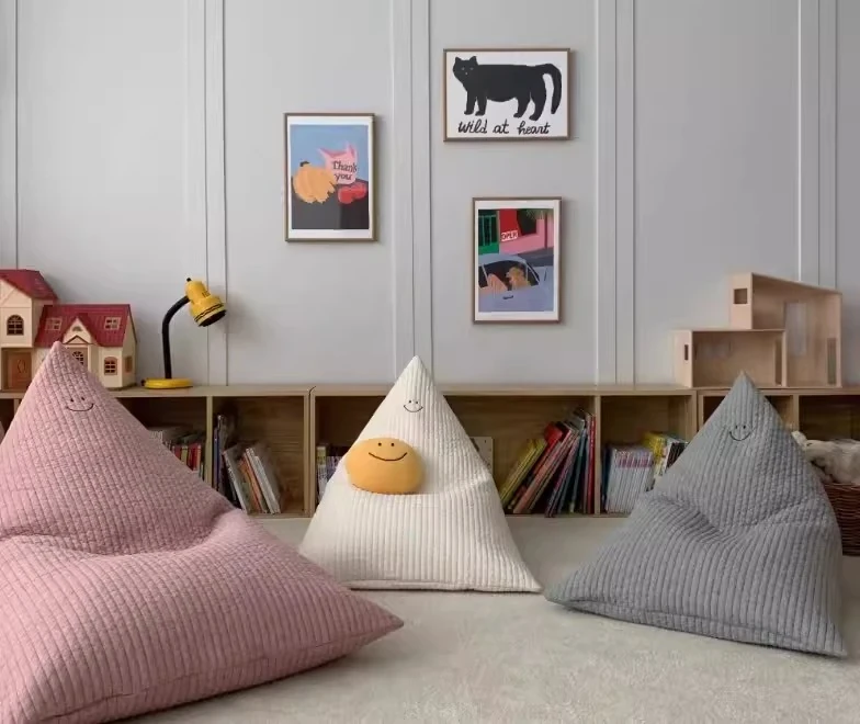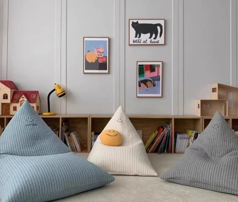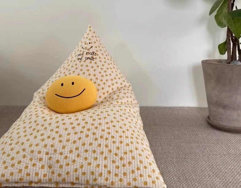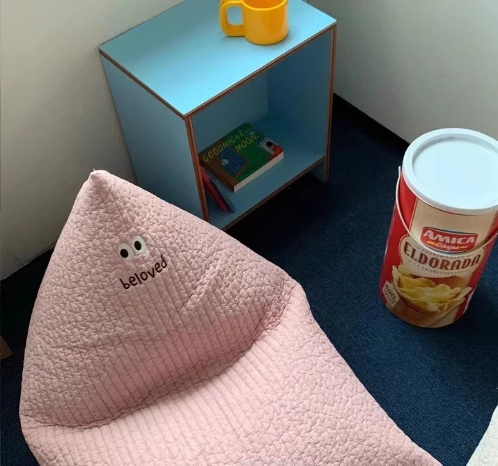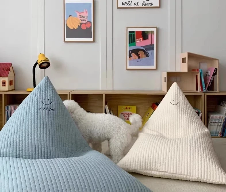 Korean Style Ins-Inspired Parent-Child Smiley Face Premium Quilted Cotton Removable Washable Bean Bag Lazy Sofa for Kids' Reading Corner