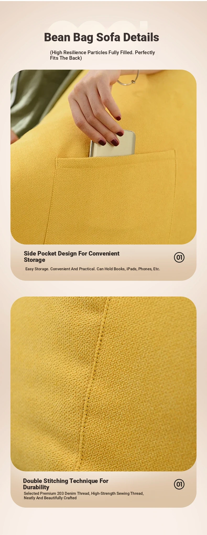 Lazy Sofa Bean Bag Chair - Versatile Tatami Style for Sleeping and Lounging, Perfect for Small Spaces like Bedrooms and Balconies, Trendy Single Seat for Relaxation.