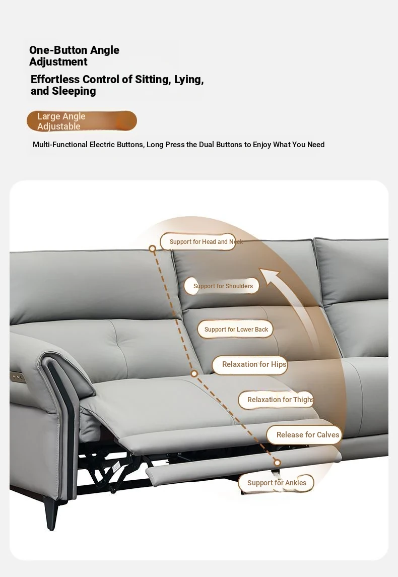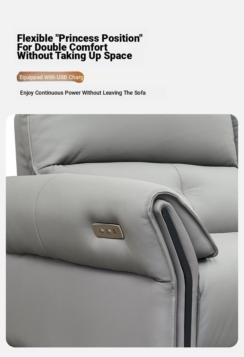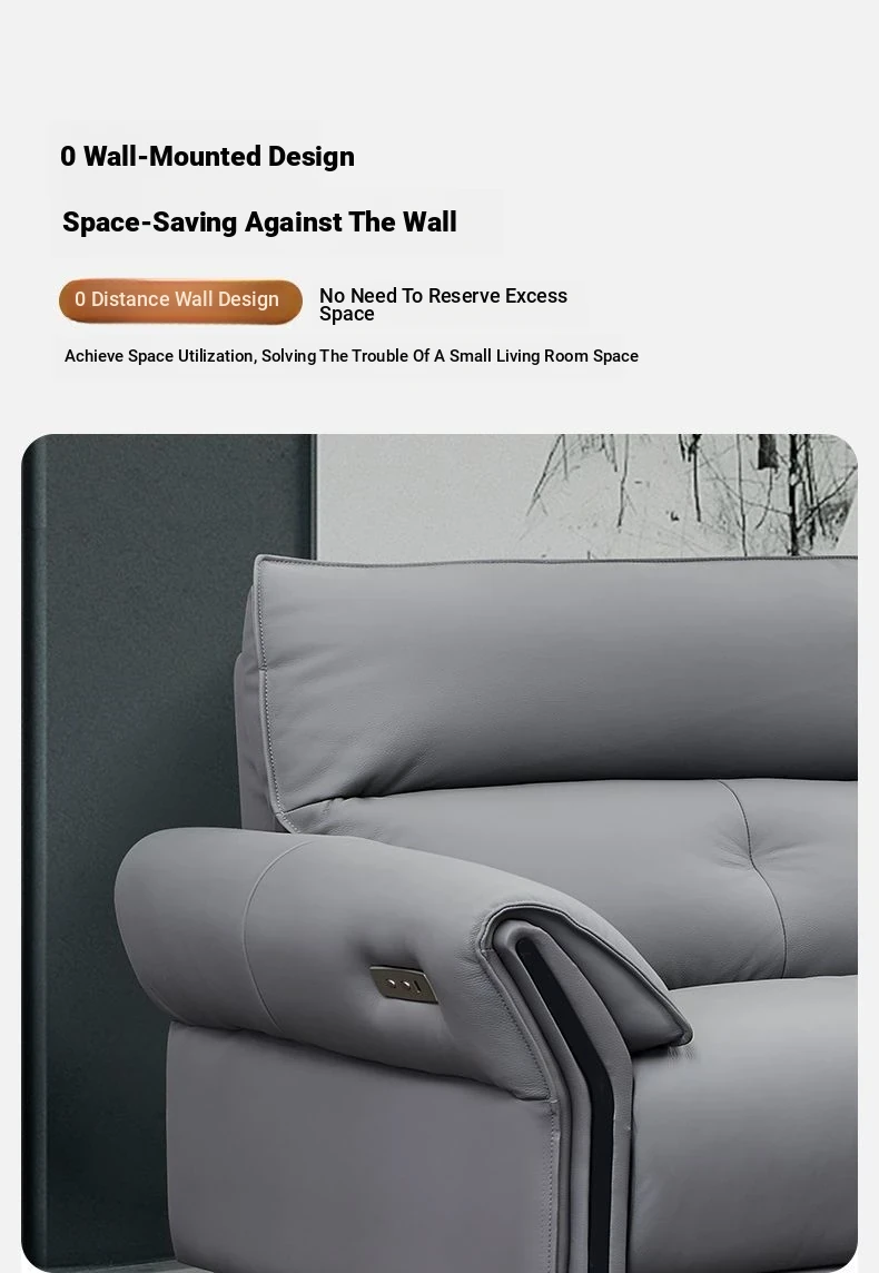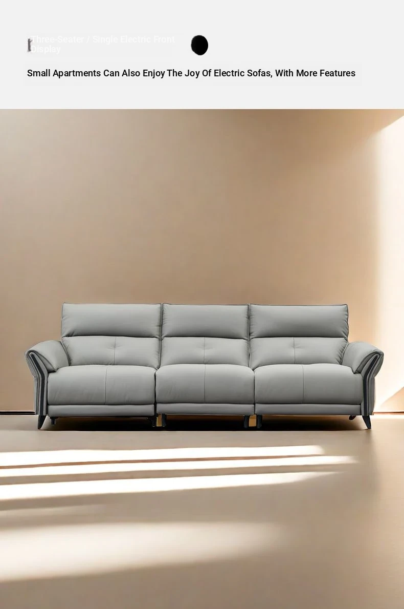 Luxurious Italian Leather High-Back Electric Sofa - Wall-Free Design, Adjustable Comfort for Three, Perfect for Your Living Room, Elegant and Functional
