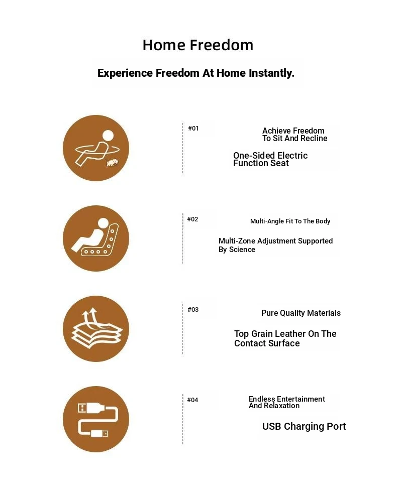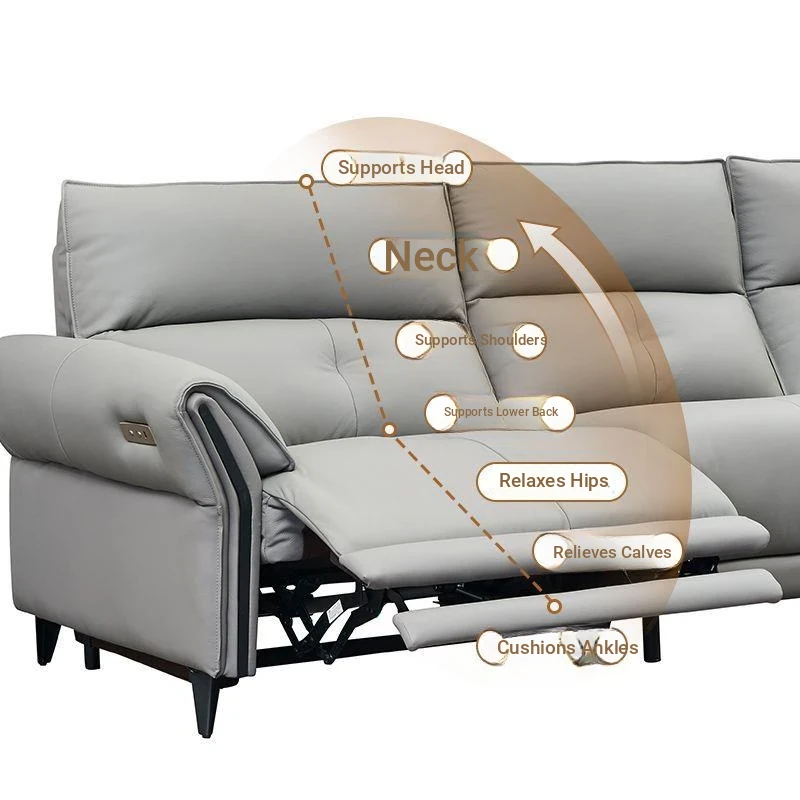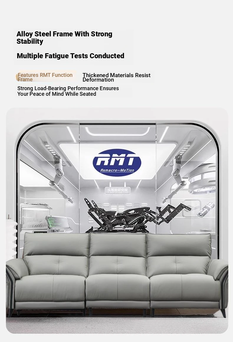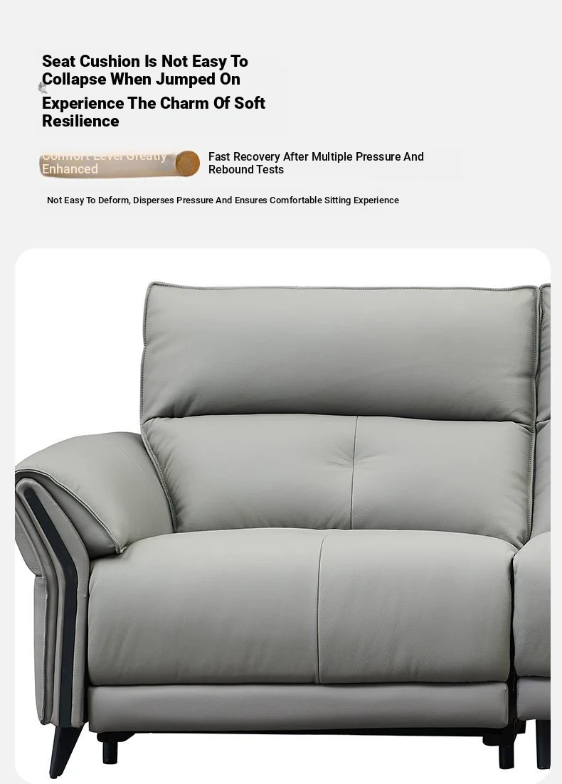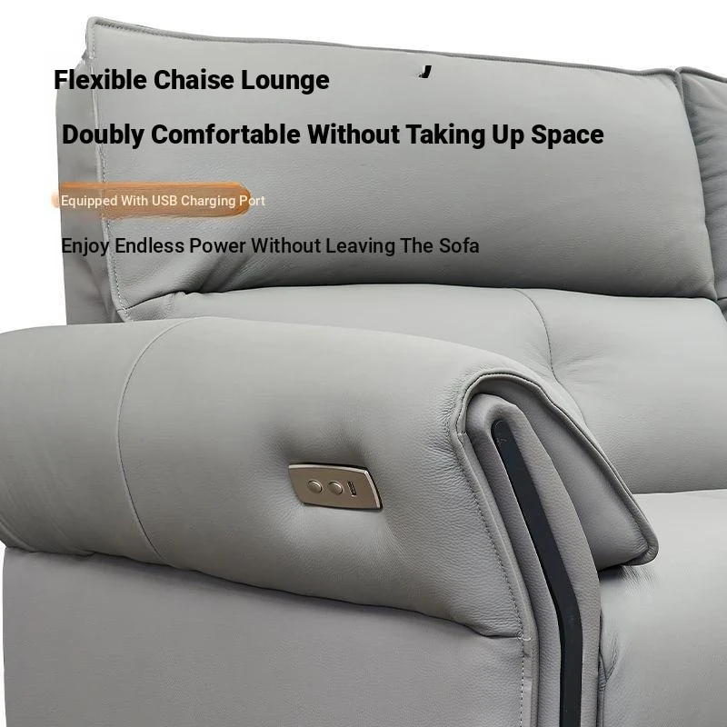 Luxurious Italian Leather High-Back Electric Sofa - Wall-Free Design, Adjustable Comfort for Three, Perfect for Your Living Room, Elegant and Functional