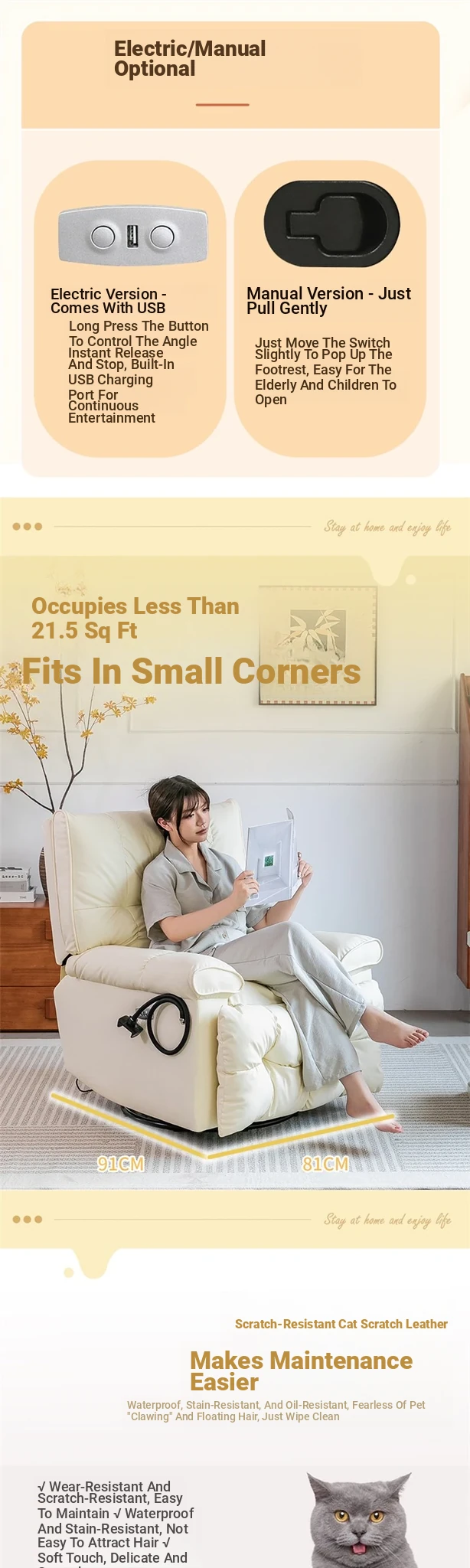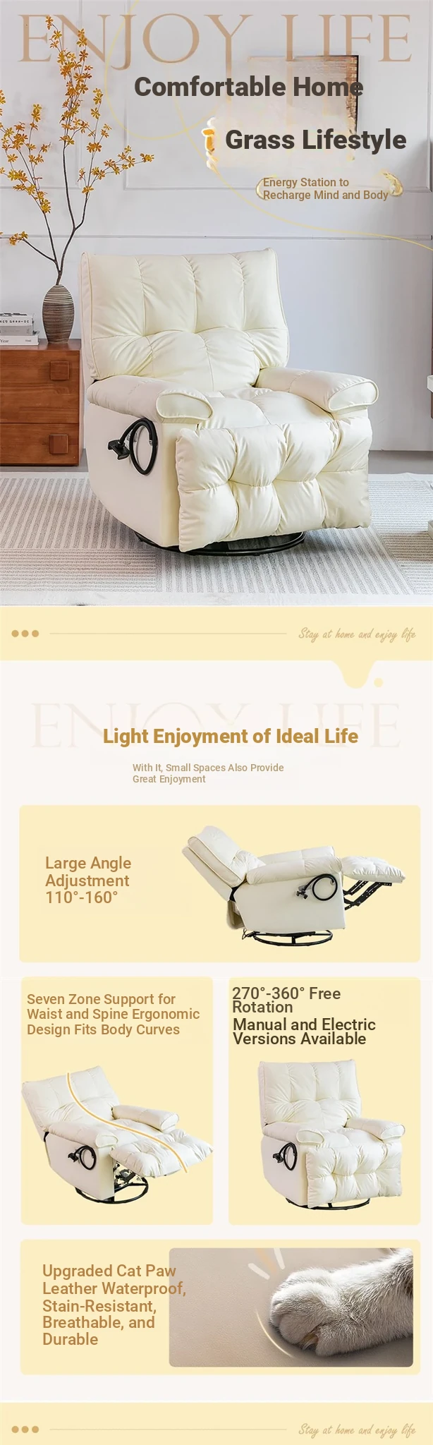 Luxury Electric Cloud Sofa Chair - Versatile Recliner for Bedroom, Perfect for Relaxation and Sleep, Features Massage Function for Ultimate Comfort