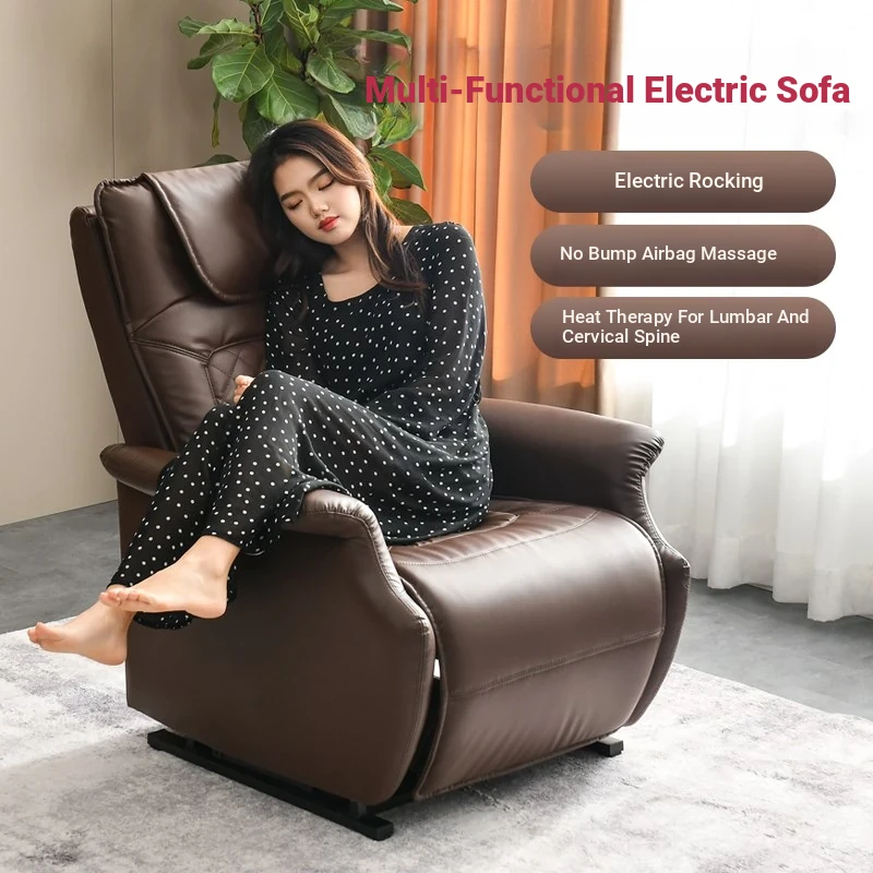 Luxury Leather Electric Reclining Space Capsule Single Lounge Chair - Multi-Functional Sofa for Home Living Room, Massage Chair, Rocking Bed for Ultimate Relaxation.