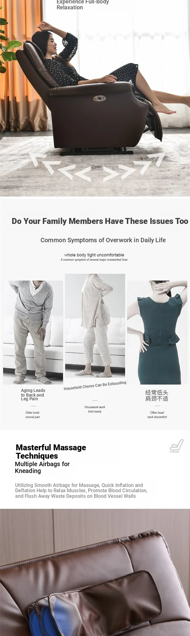 Brown color/technology leather (electric shake + massage hot compress)