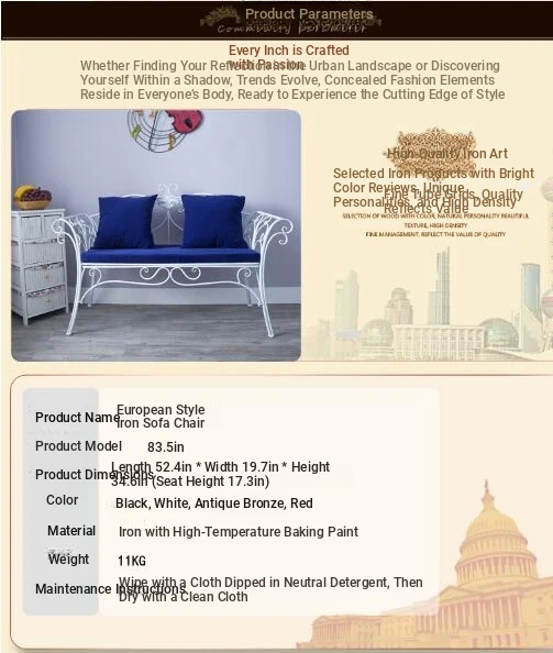 Minimalist Balcony Double Bench - Stylish European Iron Sofa Chair for Parks, Perfect for Indoor and Outdoor Relaxation with Small Coffee Table