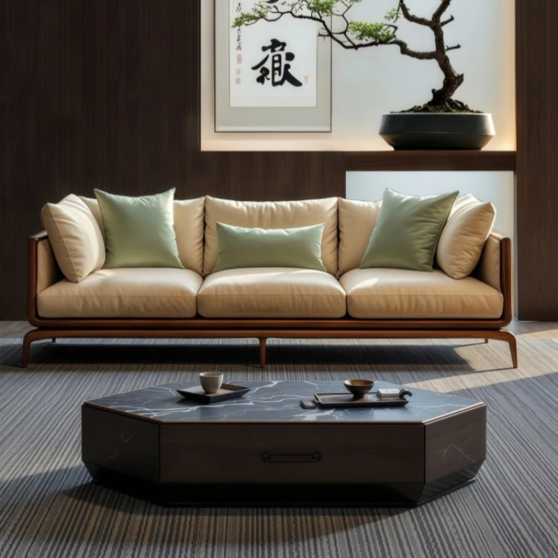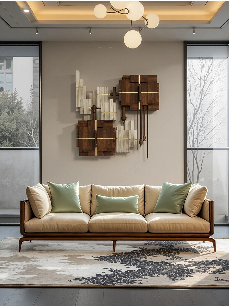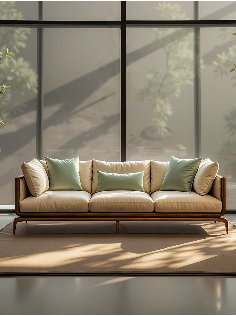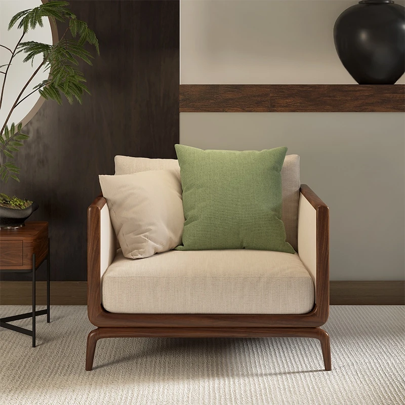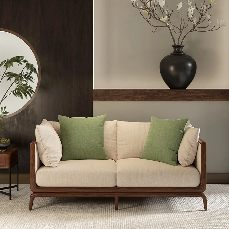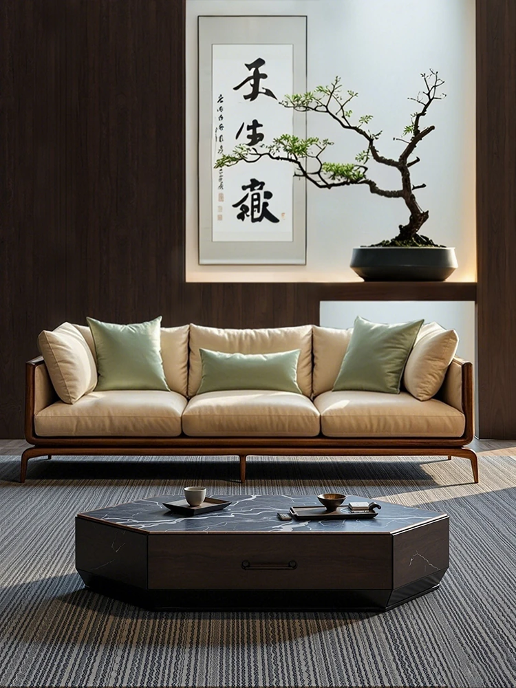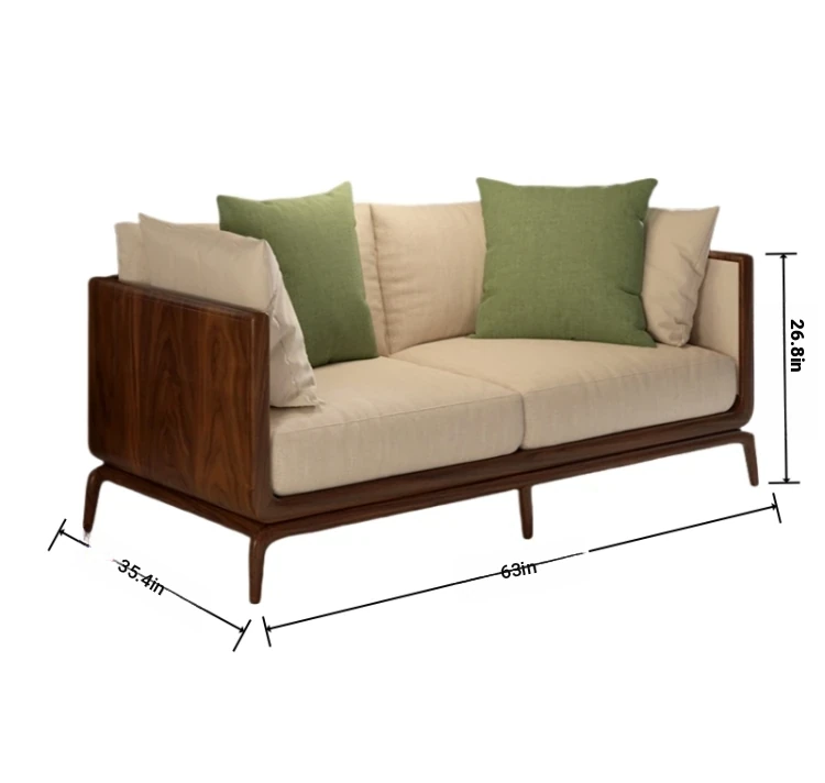 Modern Chinese Style Solid Wood Sofa in North American Black Walnut - Straight-Line Design for Living Room, Ideal for Villas and Small Spaces, Inspired by Song Dynasty Aesthetics