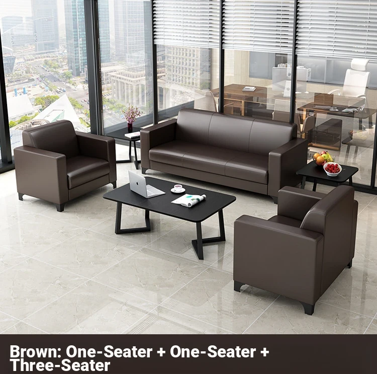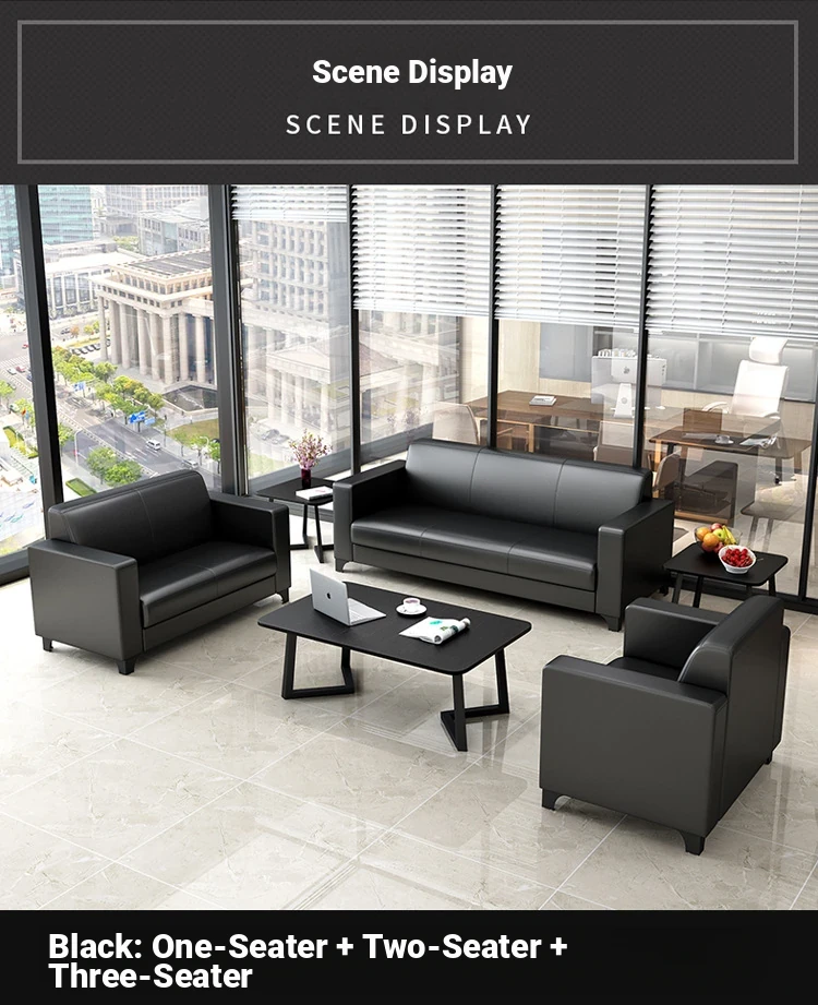 Modern Minimalist Office Sofa and Coffee Table Set for Business Reception - 3-Seater Design Ideal for Small Spaces, Premium Quality PU Leather QDF