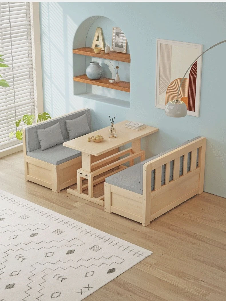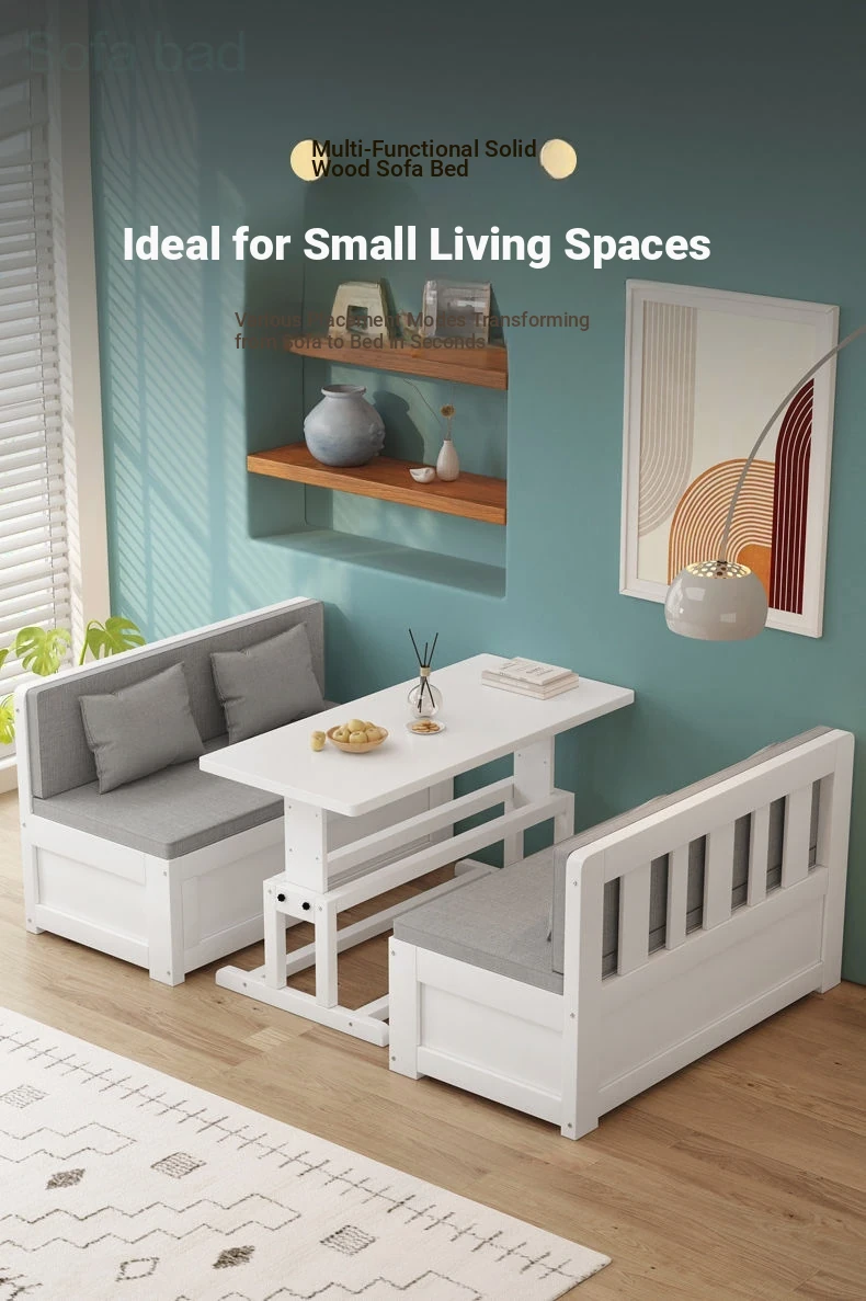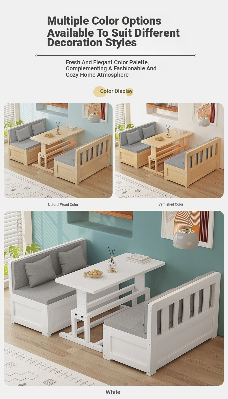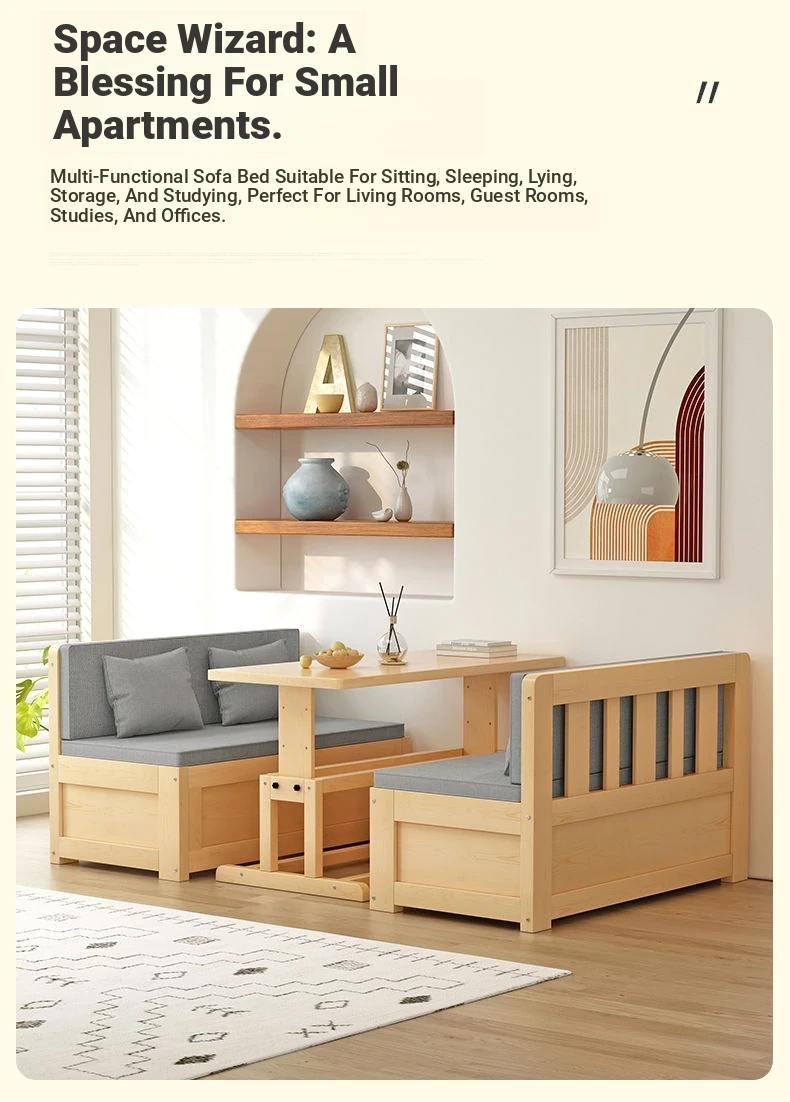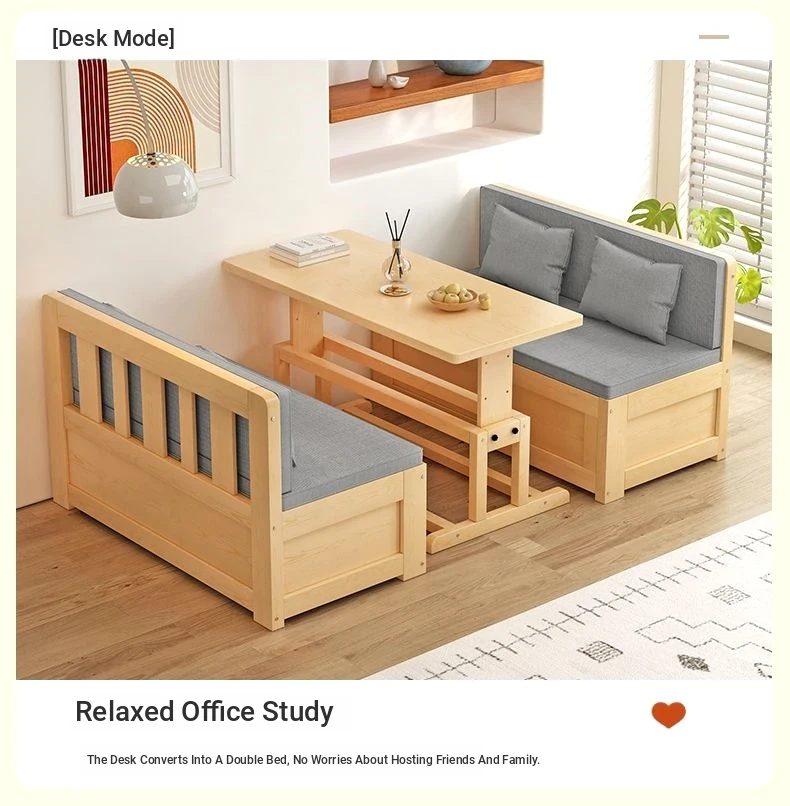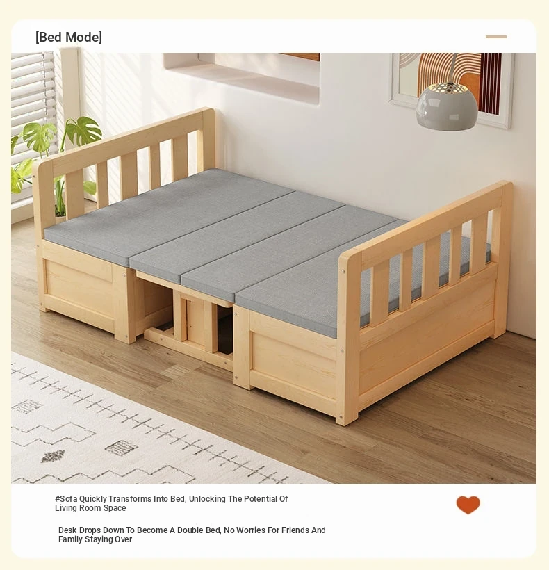 Modern Minimalist Solid Wood Sofa Bed with Foldable Design and Desk - Multi-functional Storage Bed for Small Living Spaces and Compact Rooms