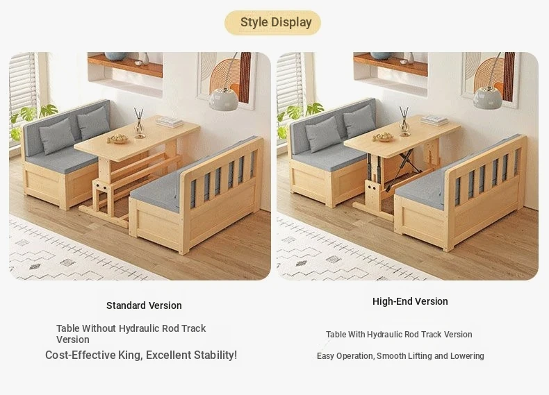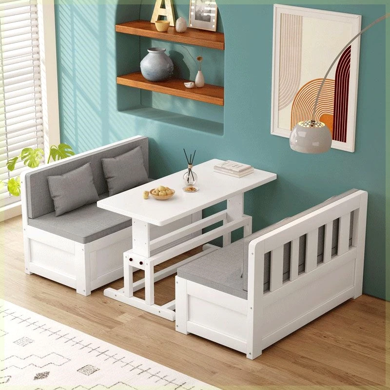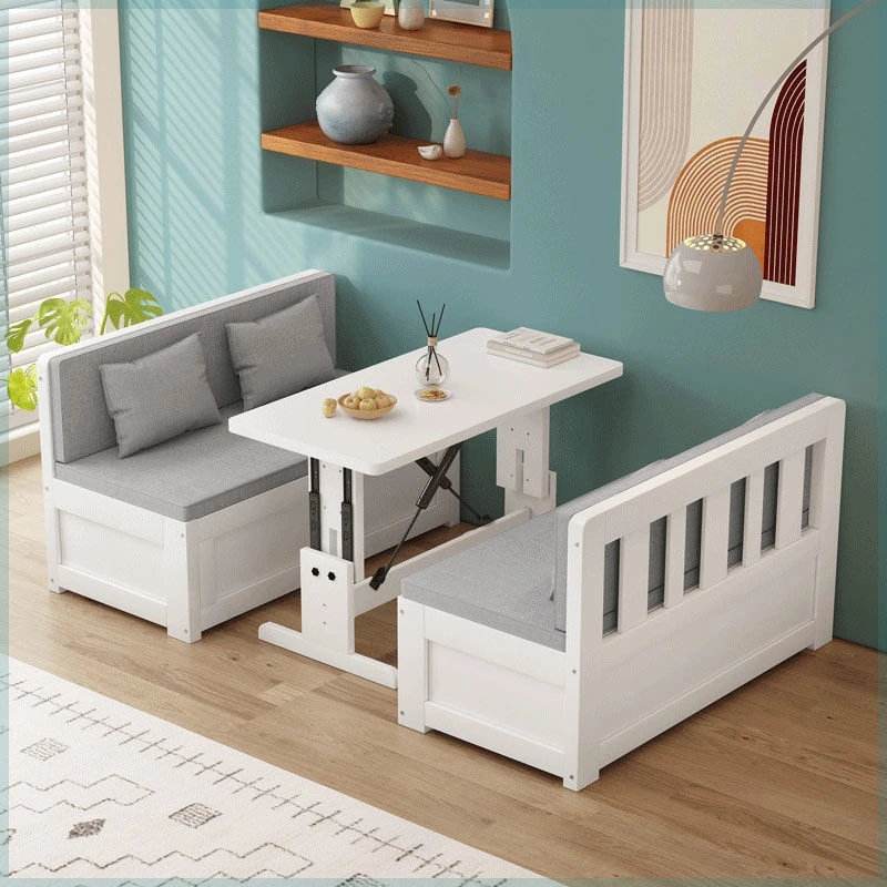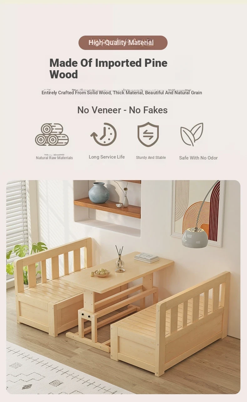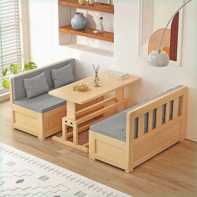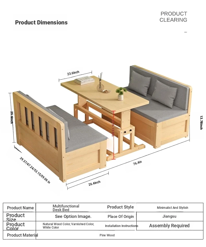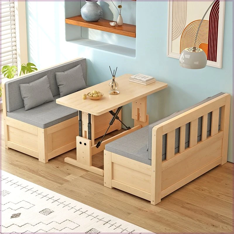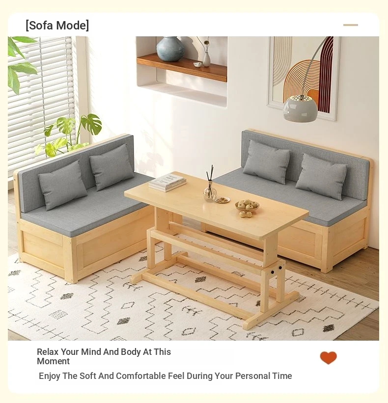 Modern Minimalist Solid Wood Sofa Bed with Foldable Design and Desk - Multi-functional Storage Bed for Small Living Spaces and Compact Rooms