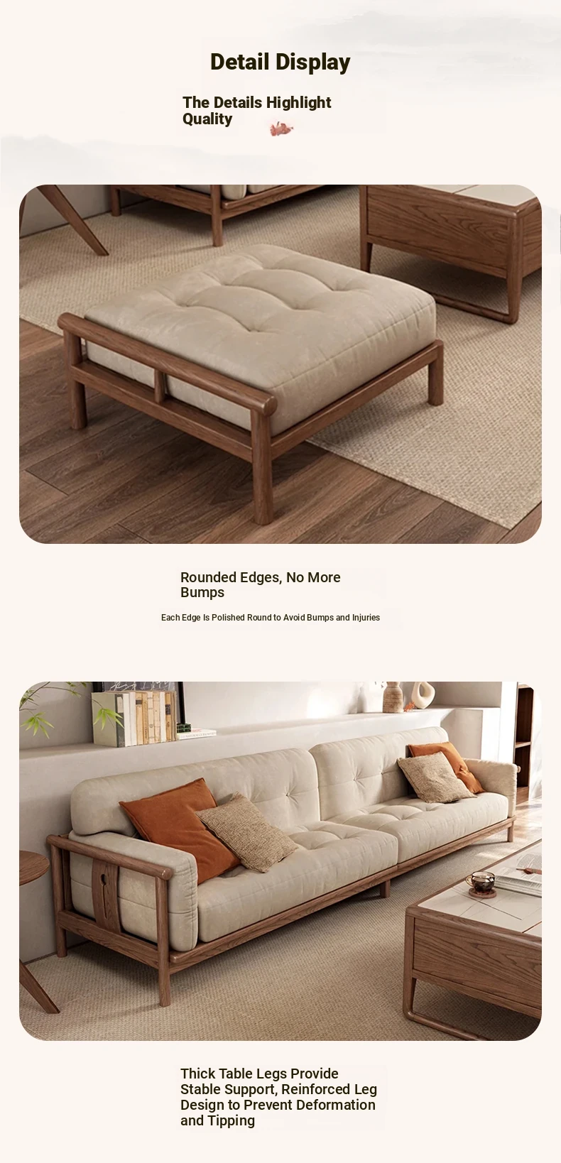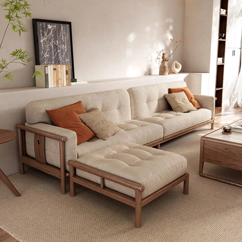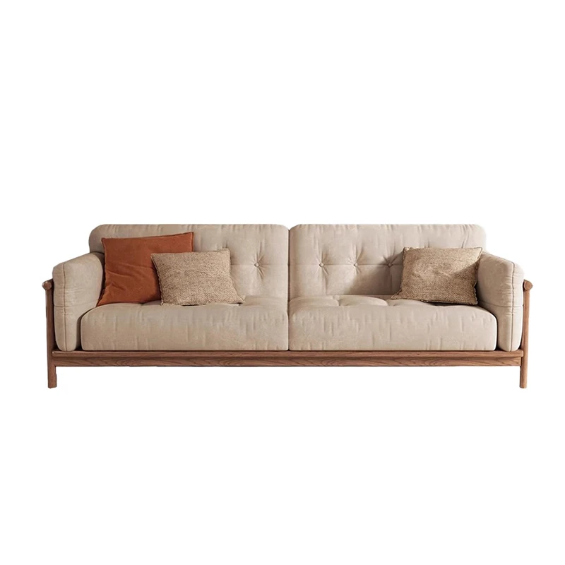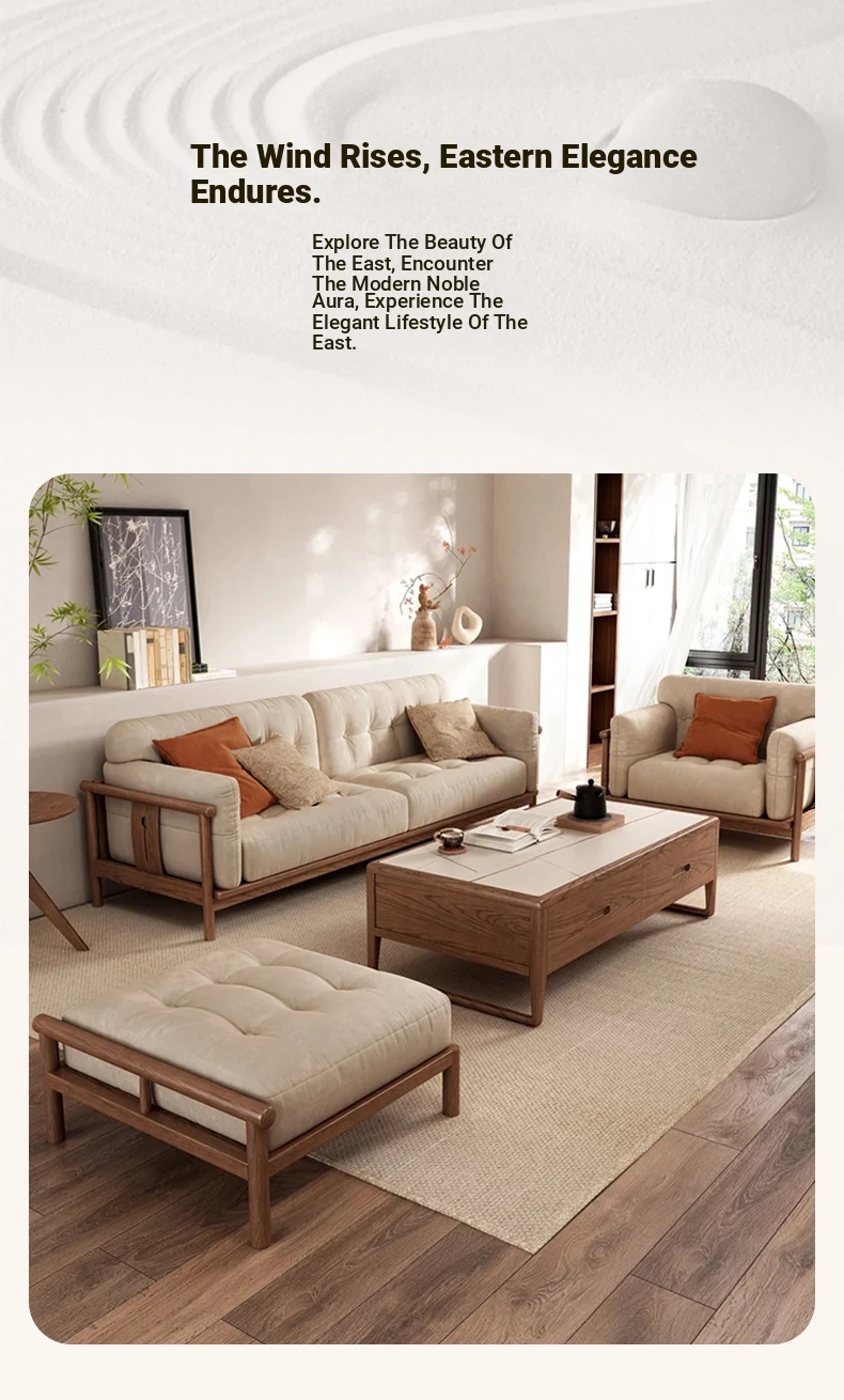Modern Minimalist Solid Wood Sofa Set with Mortise and Tenon Frame, Upholstered Fabric Design - Zen-Inspired Luxury and Elegance